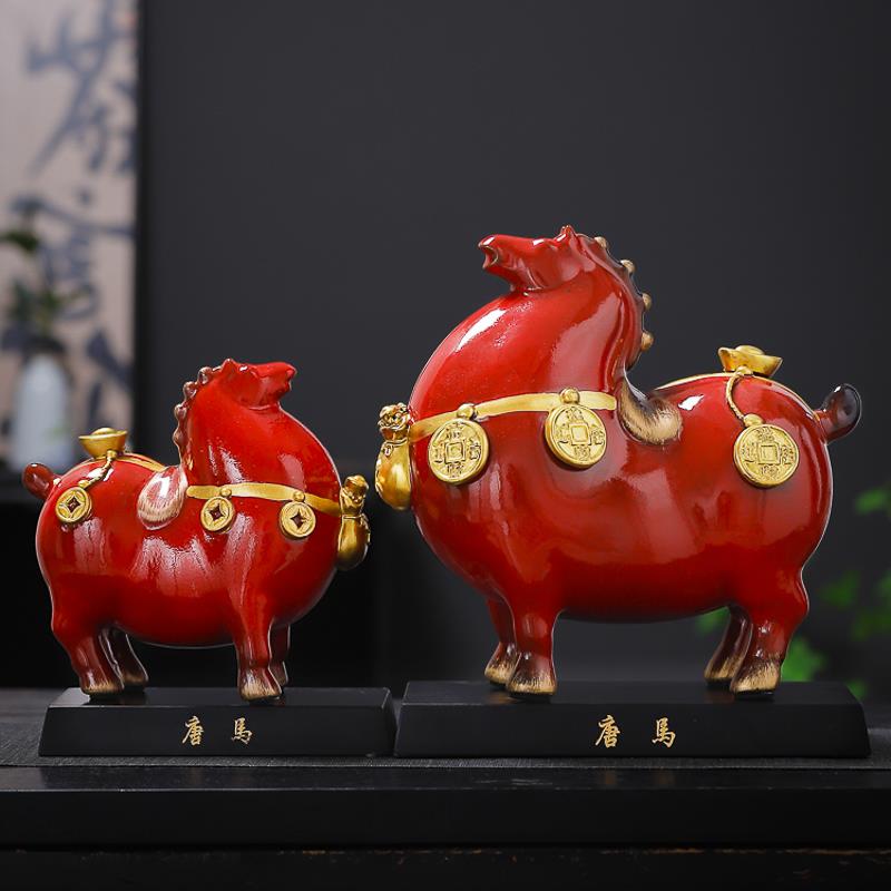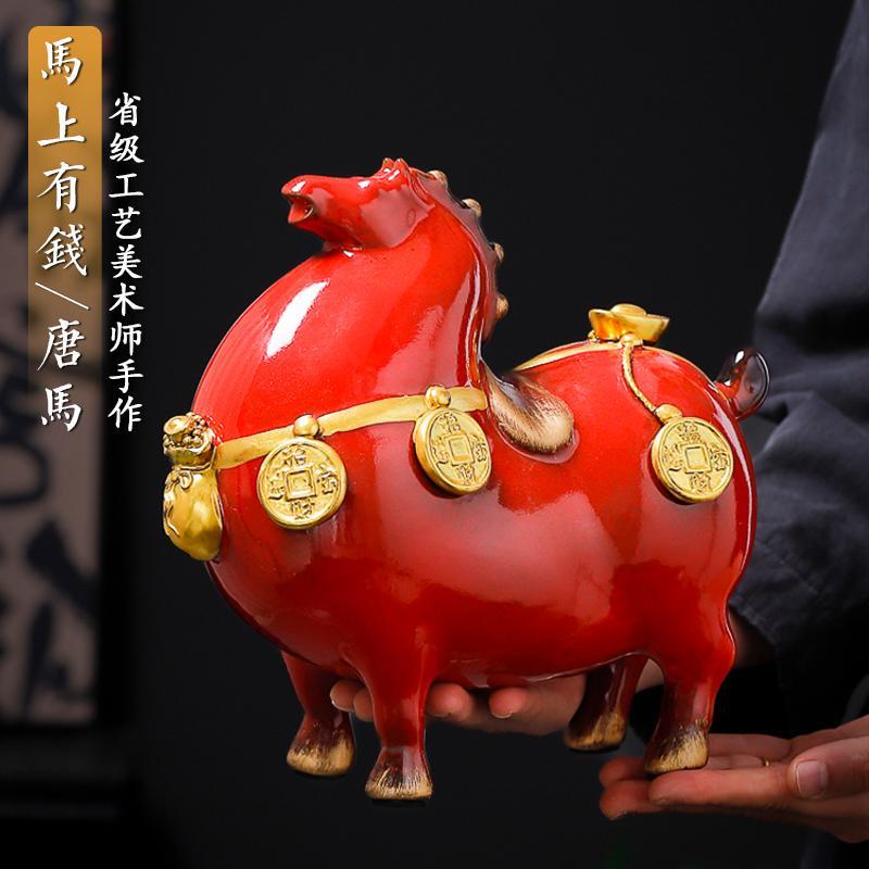 陶瓷马上有钱摆件红色招财马玄关中式家居客厅办公室装饰工艺礼品