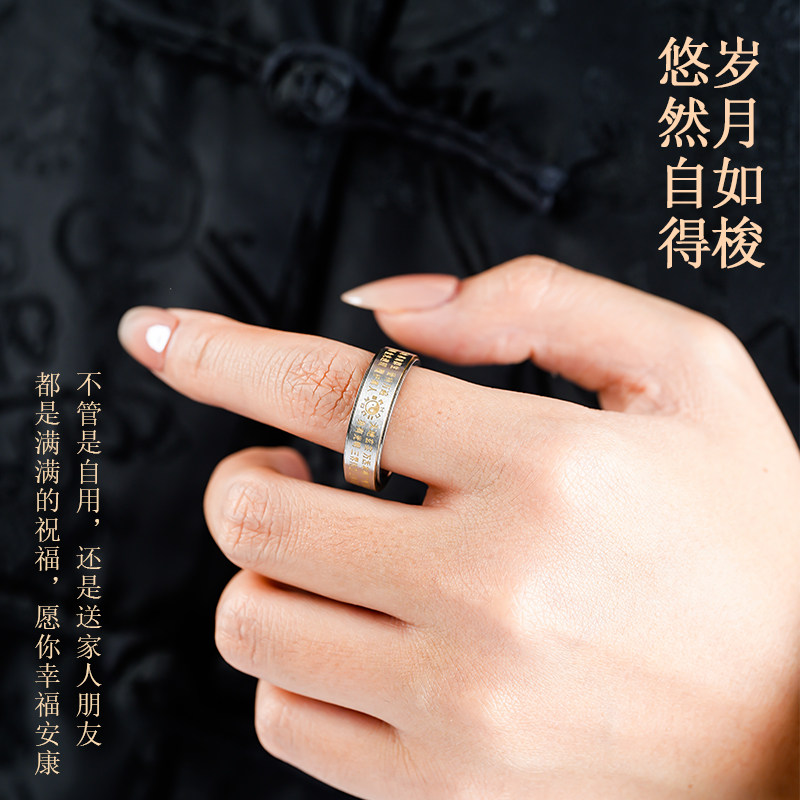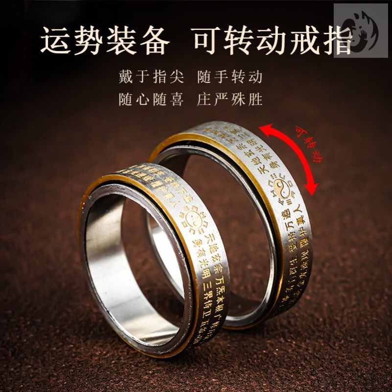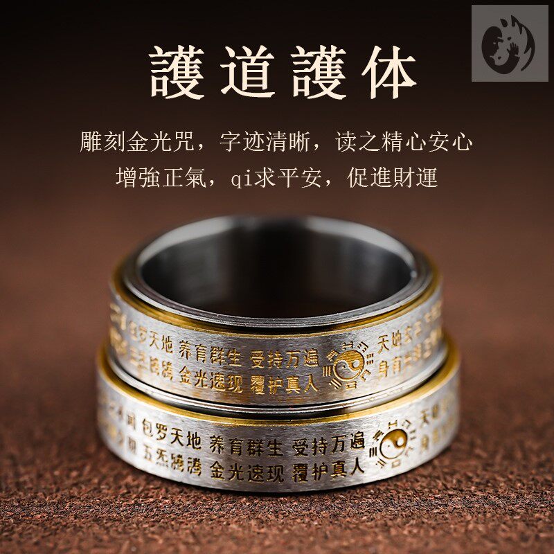 金光咒戒指道家护身符小众设计高级感国潮八卦钛钢指环男女款一对