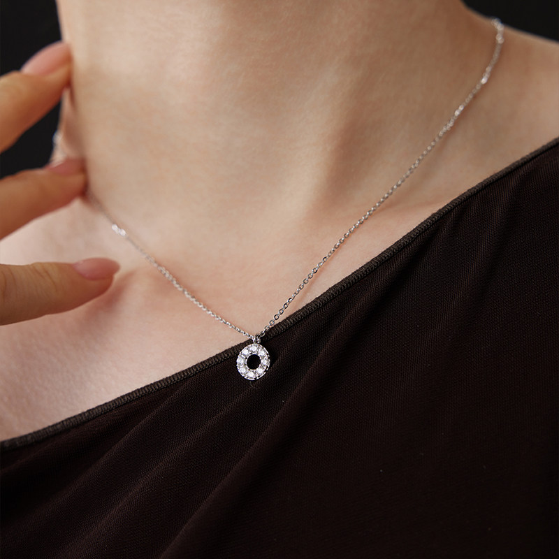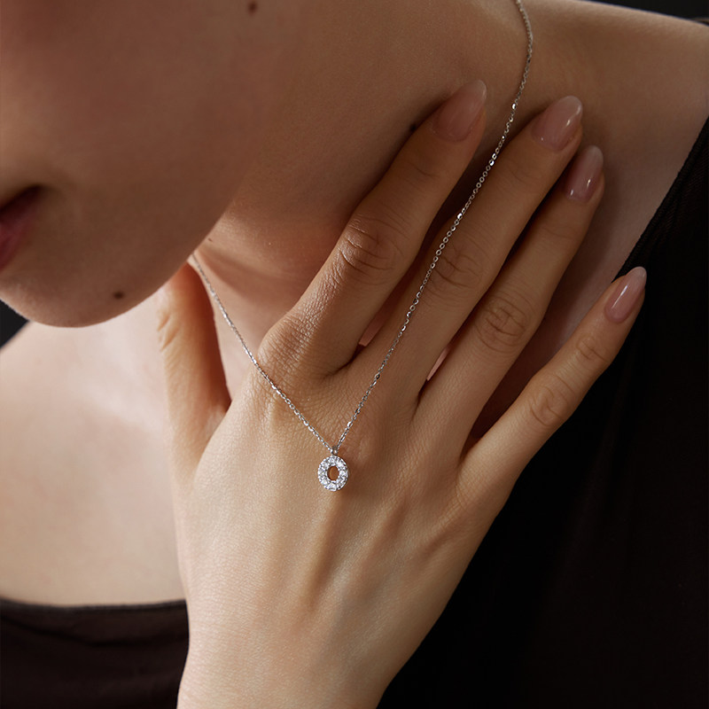 PAUSA ANN s925 极简甜甜圈圆环火彩满钻轻奢通勤金银项链