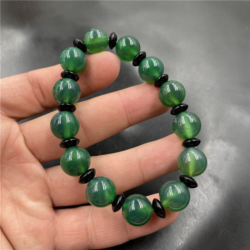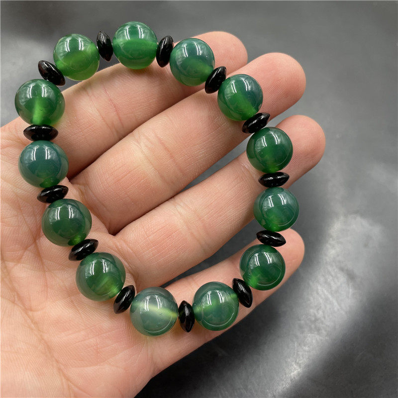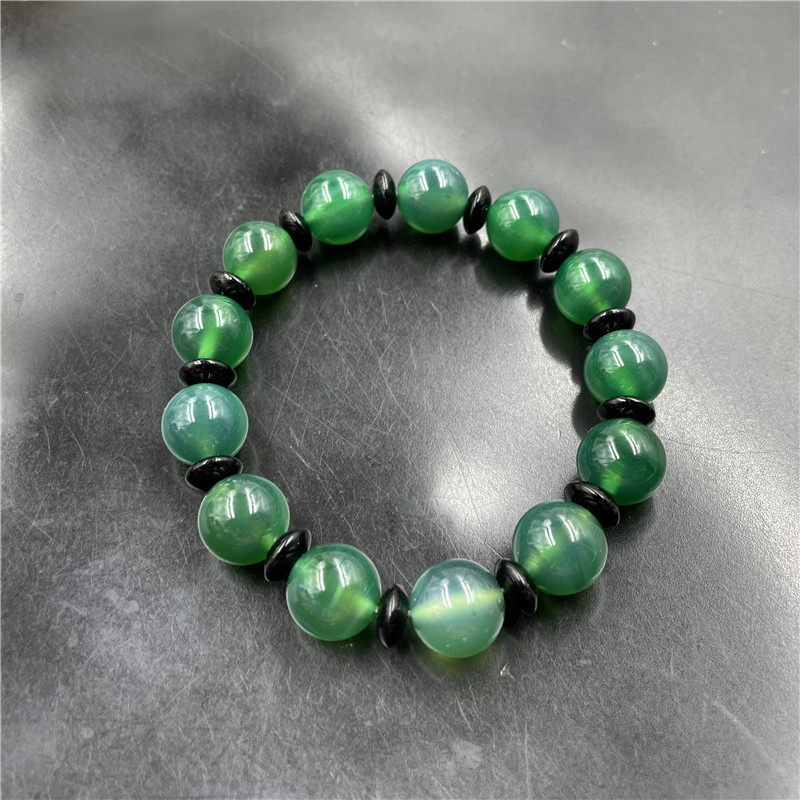 四海玉器 女款12毫米绿色玛瑙圆珠手链 绿玉髓手串 特价