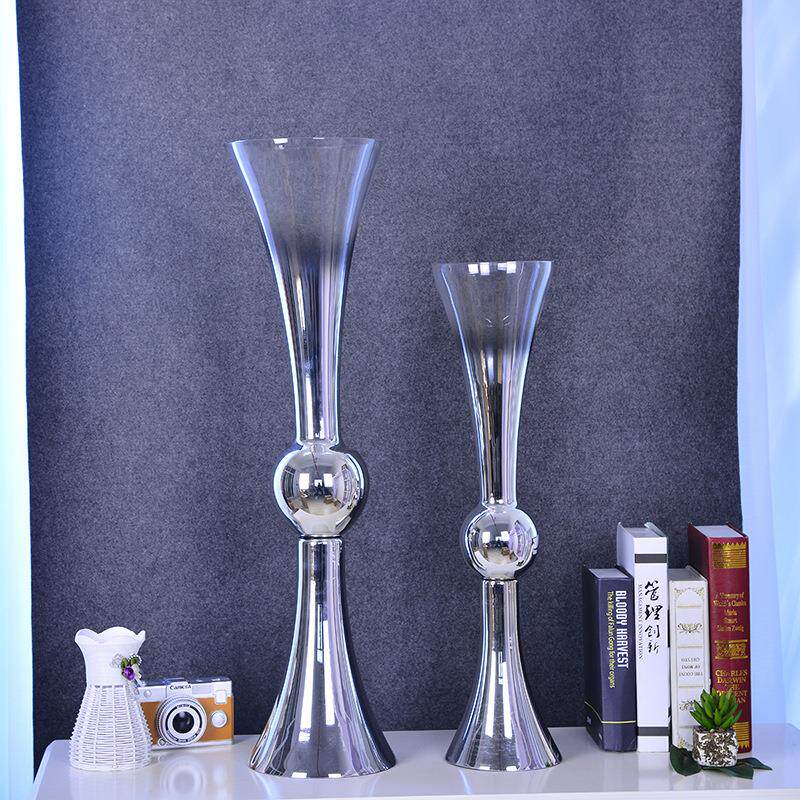 现代电镀玻璃金银色明料花瓶摆件样板间客厅插花器轻奢软装饰品