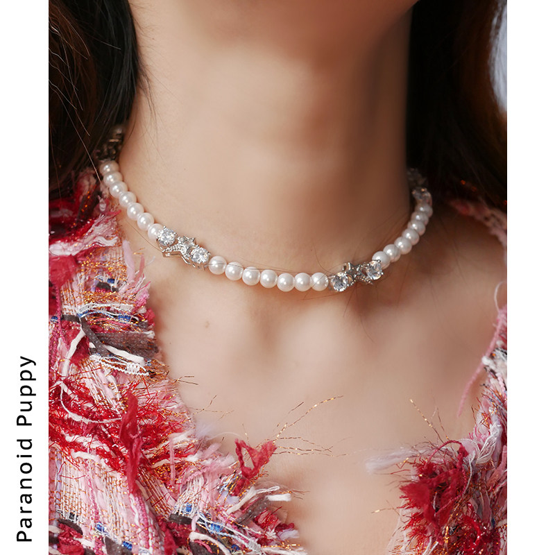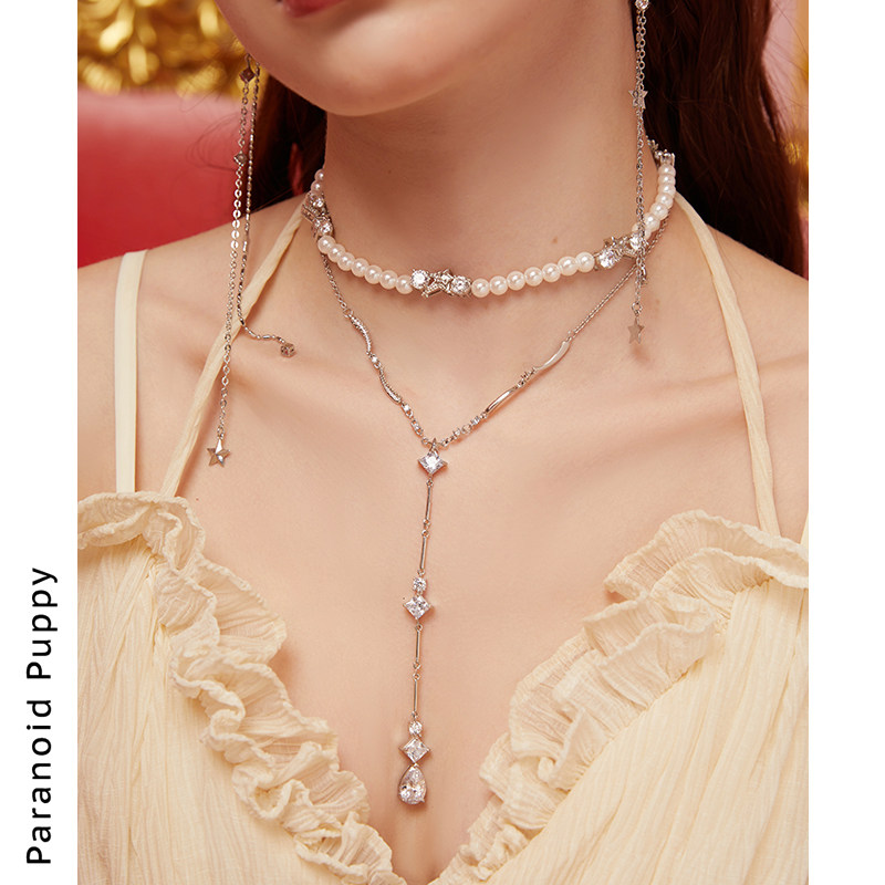 PP原创 仙女晚宴法式珍珠925纯银项链女轻奢小众设计感Y字锁骨链