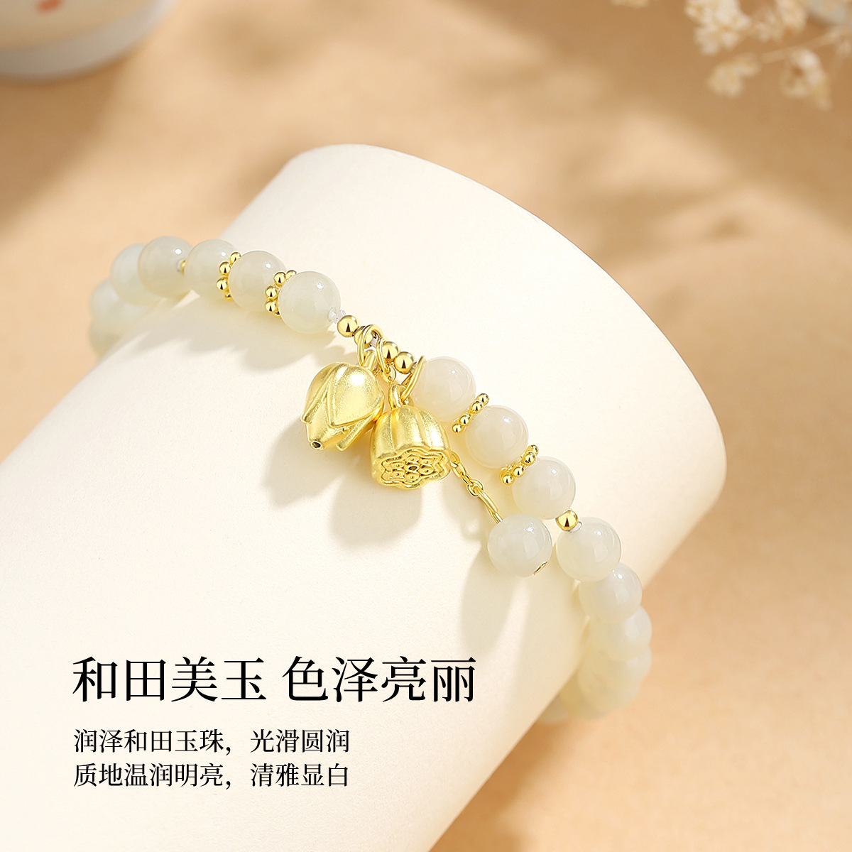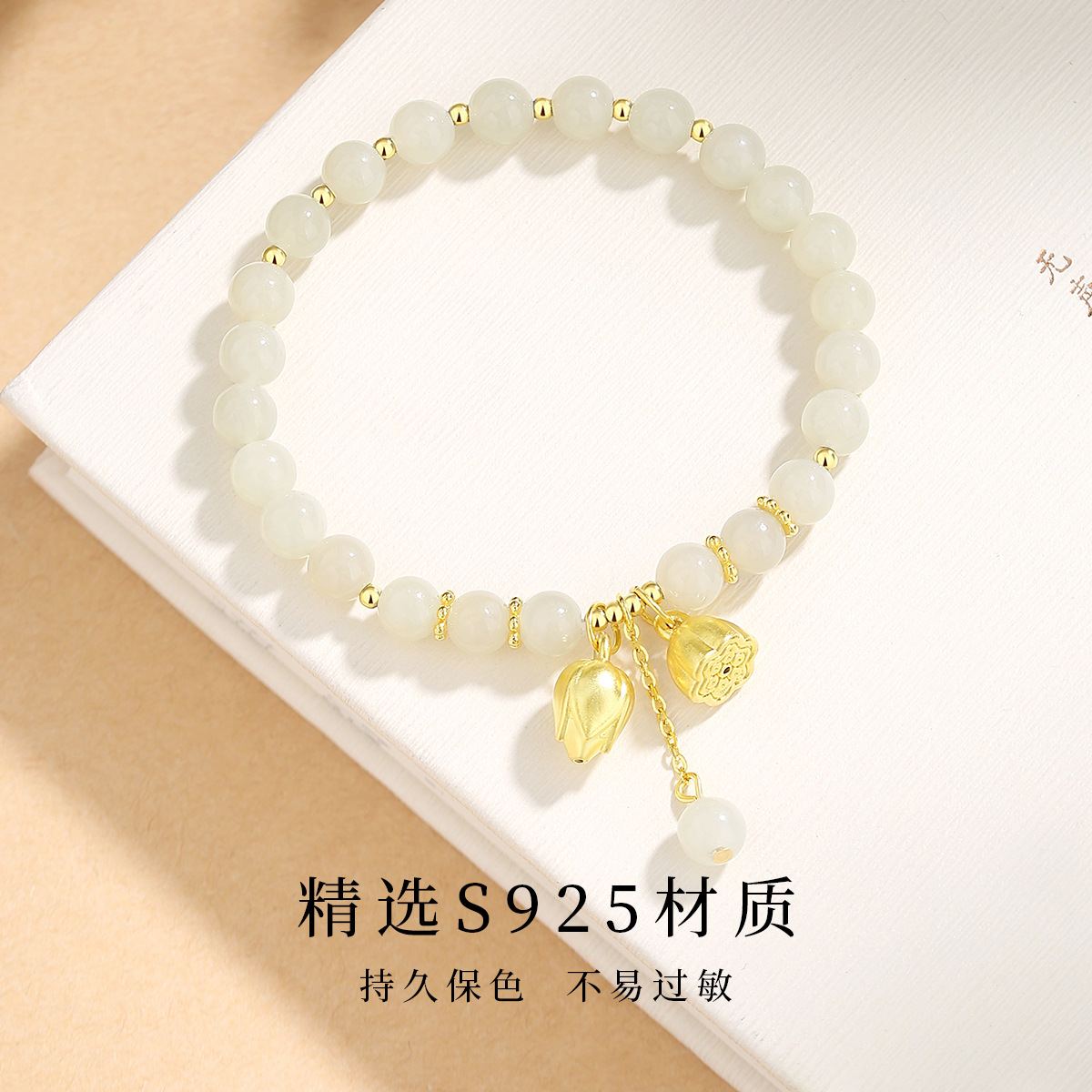 摩天轮原创天然和田玉两世欢手串手链饰品女百搭S925纯银小众设计