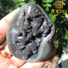 方言和田玉蒋喜精品珍稀黑色名品鹿油皮炭锅灰墨玉一把抓手把件R