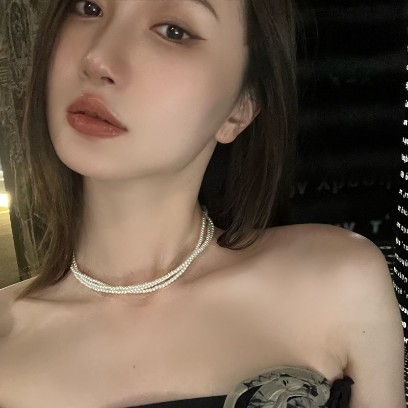 LJW 法式优雅三层珍珠串珠项链气质轻奢小众设计锁骨链chocker女