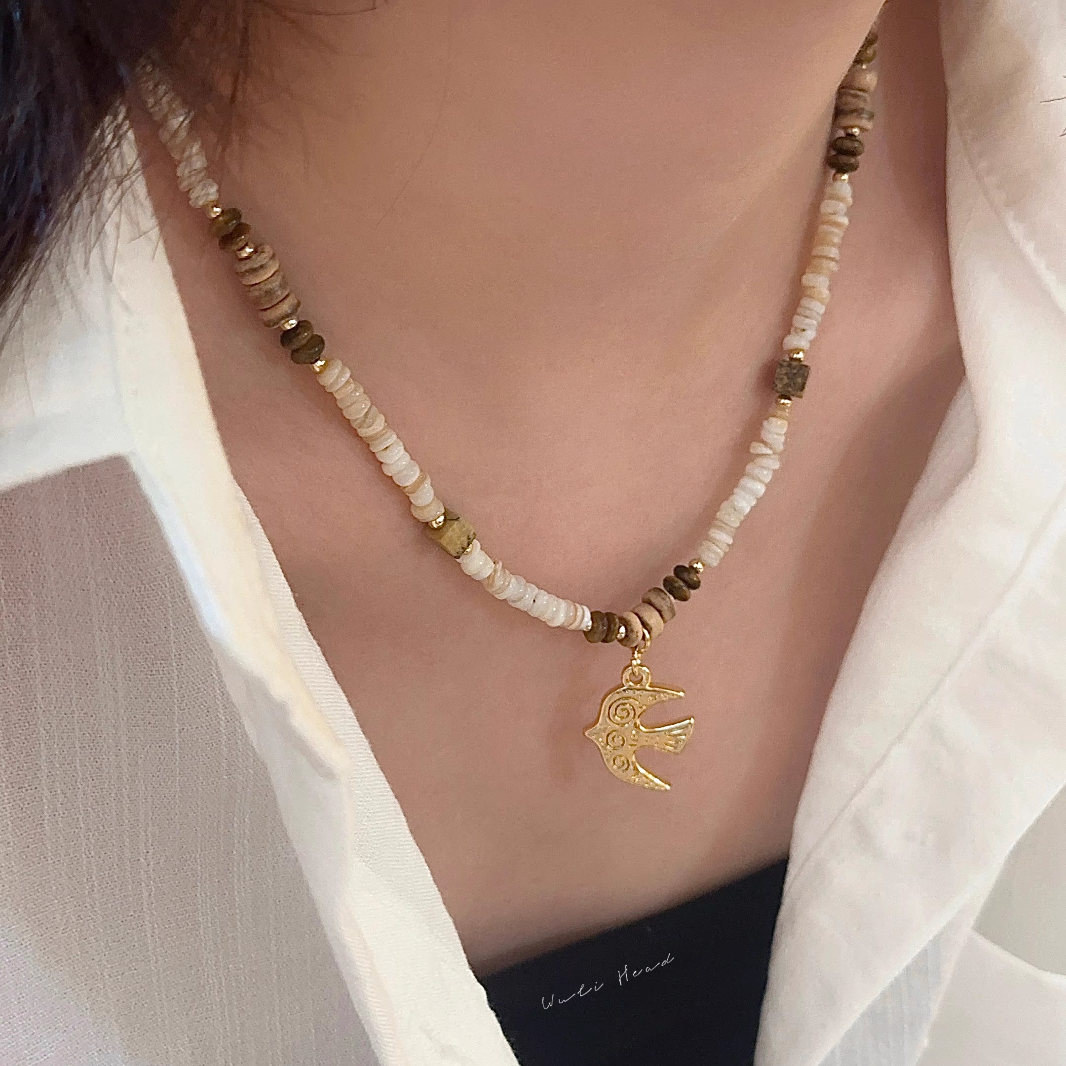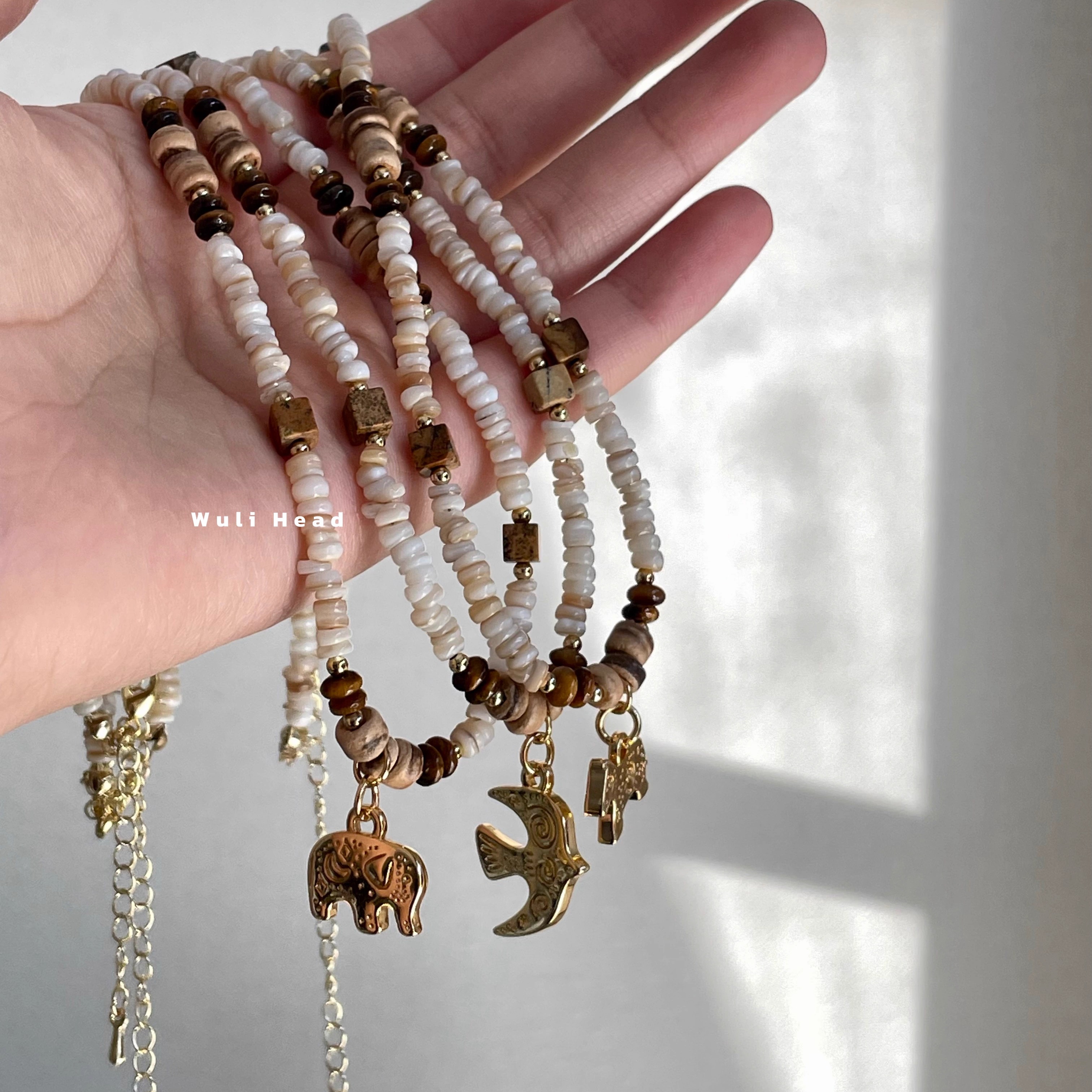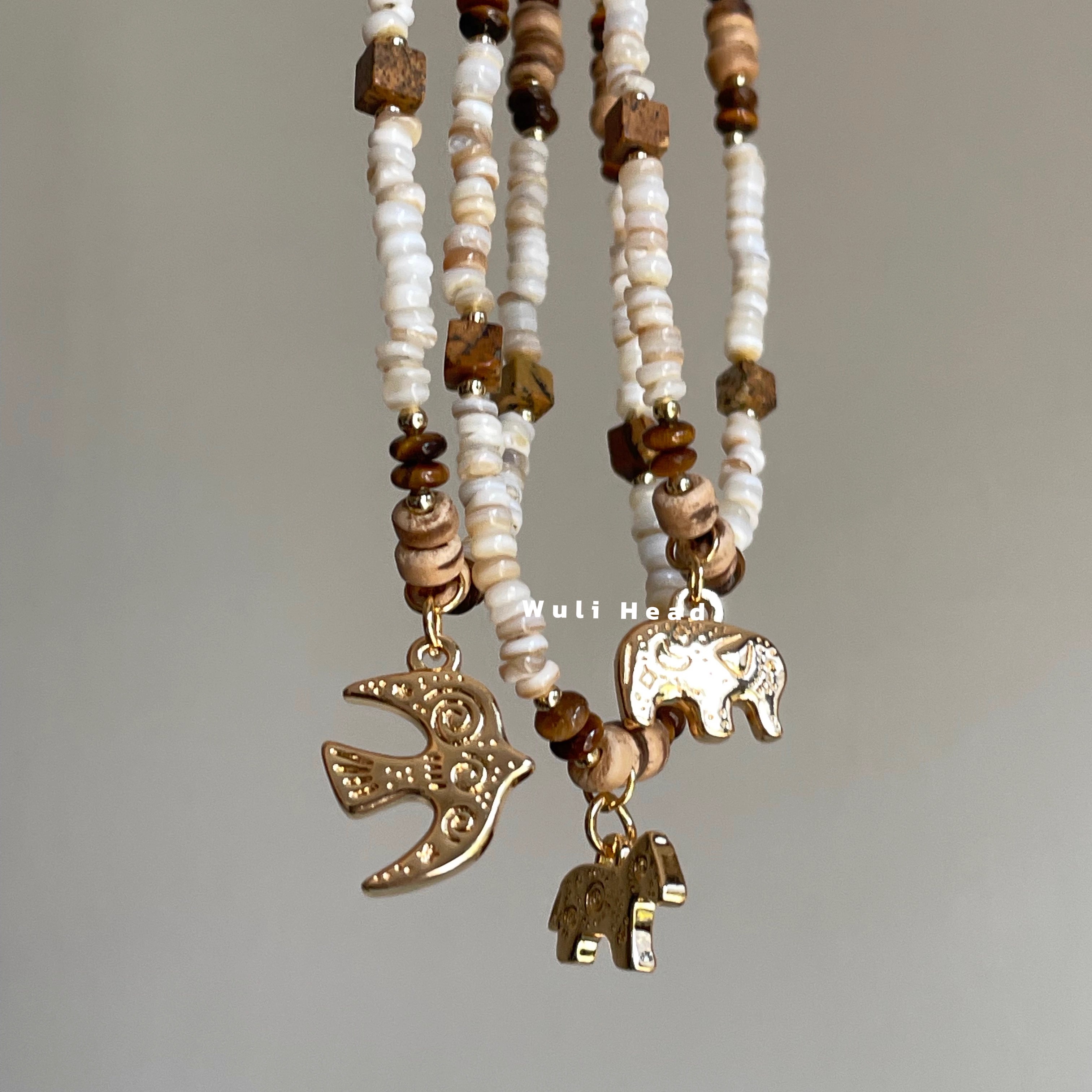 [ 无厘头 ] 异域珠韵 飞鸟大象奔马吊坠原创天然石贝壳复古项链