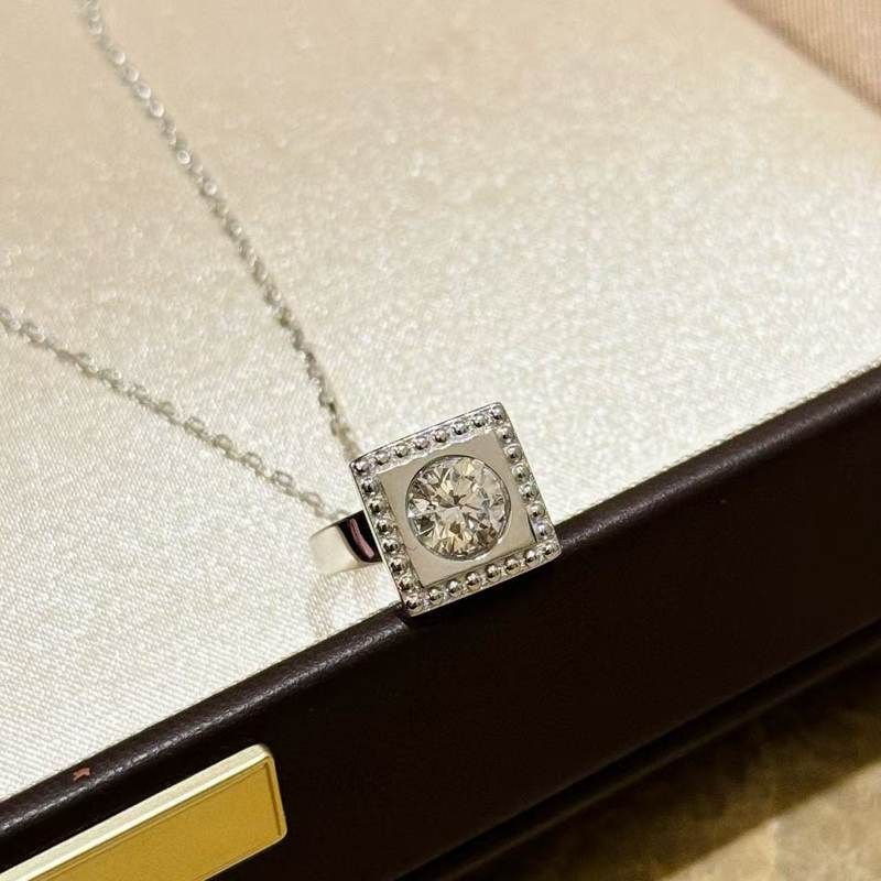 S925纯银精工高级感手捧花项链方形满钻戒指形锁骨链2025新款