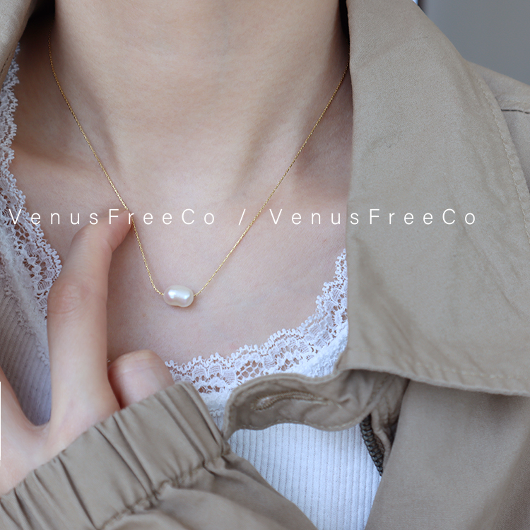 一颗法式天然珍珠 18k镀金蛇骨闪锁骨链异形珍珠项链精致简约叠戴