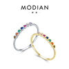 MODIAN韩国东大门S925银饰ins风单圈细戒指女甜美彩虹泡泡尾戒子