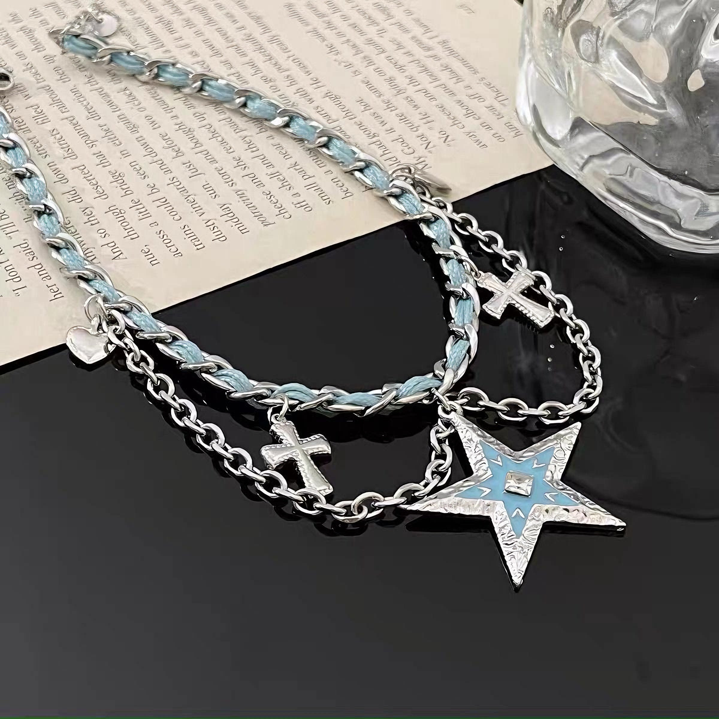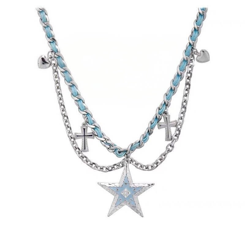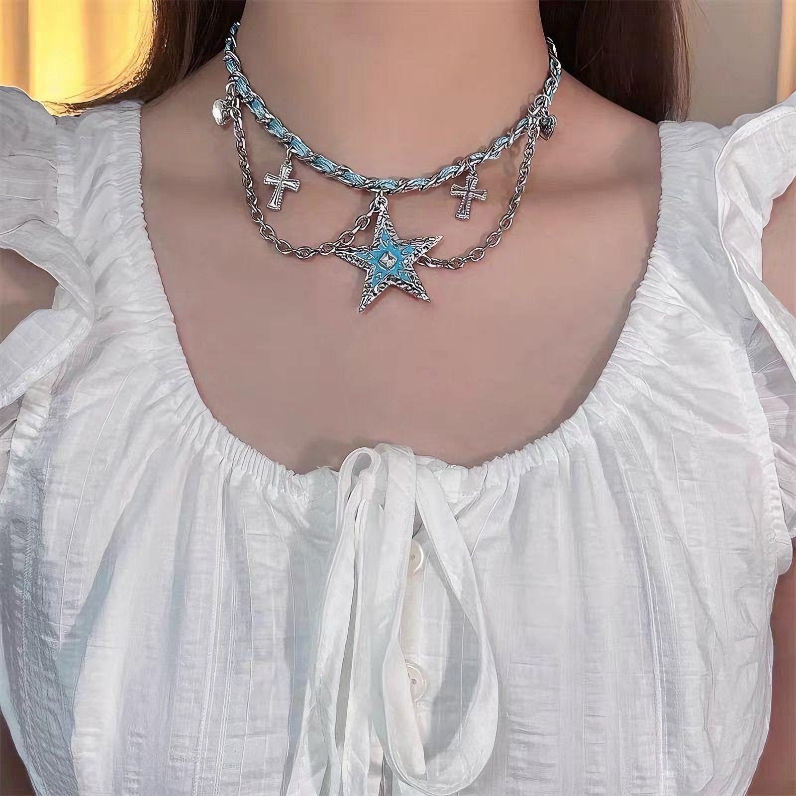 亚比风文化辣妹蓝色星星爱心十字架choker皮革项链锁骨链y2k配饰
