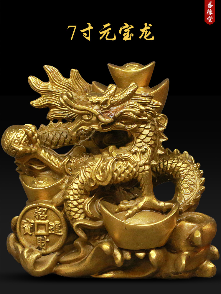 善缘堂汉龙铜龙摆件工艺品黄铜青龙铜汉龙剑龙纳福龙家居送礼佳品