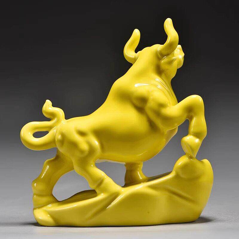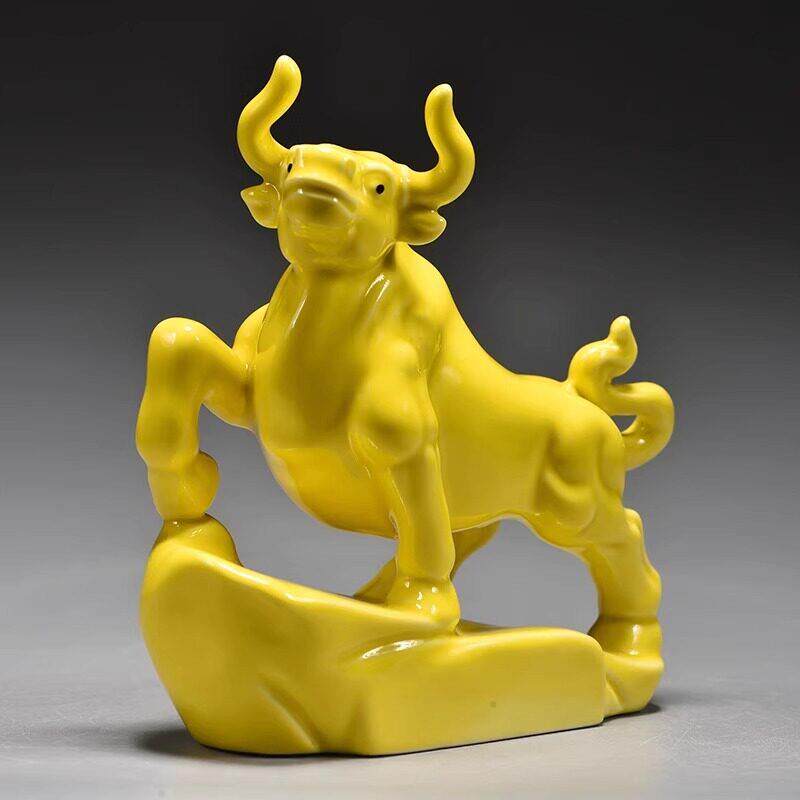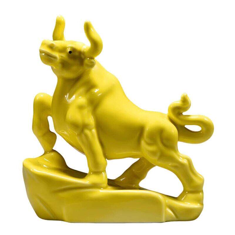 黄色陶瓷牛摆件十二生肖牛气冲天吉祥物化解化妆室厨房装饰工艺礼