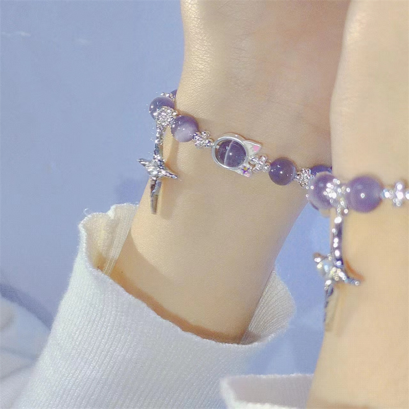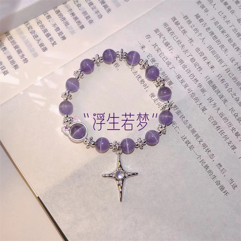 原创设计 千禧辣妹y2k紫色猫眼石水晶手链女甜酷十字架闺蜜手串女