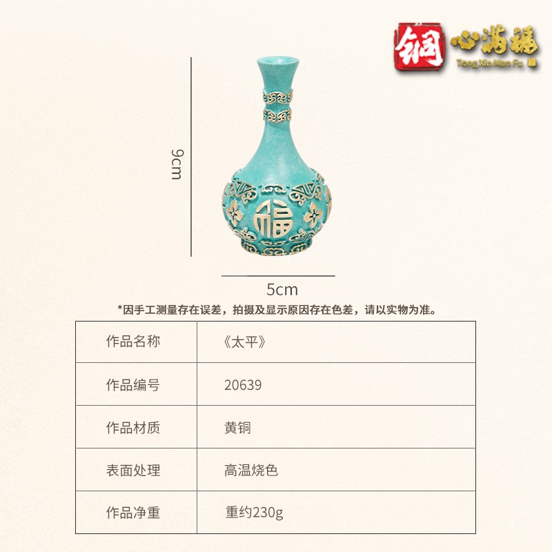 铜摆件《太平》铜工艺品 桌面装饰品 国潮文创花瓶 中国传统礼物