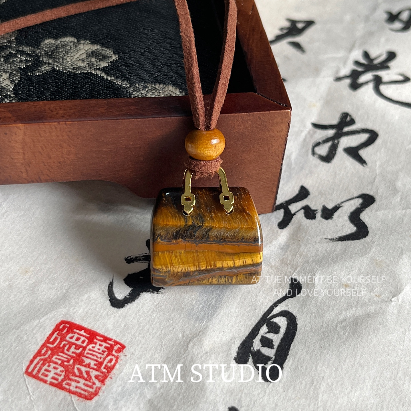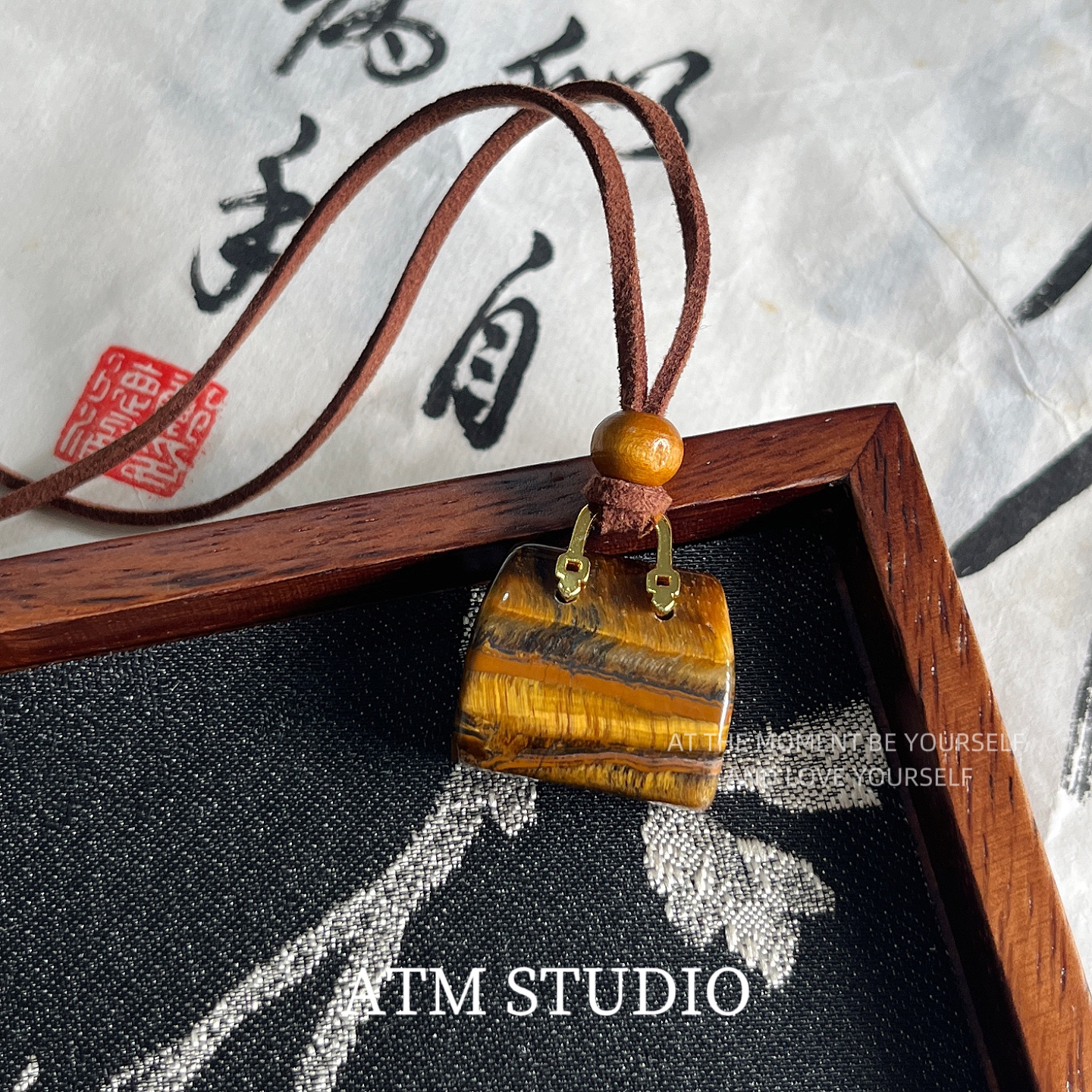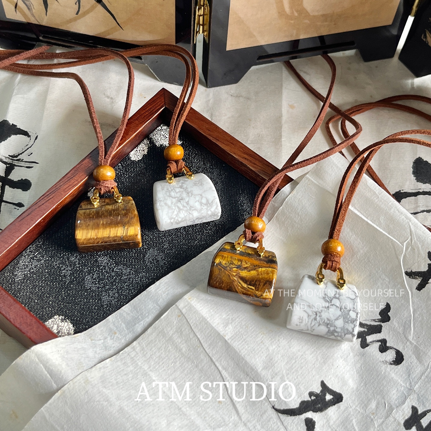 韩系虎眼石毛衣链天然白松石包包项链女小众设计感毛衣链秋冬长款