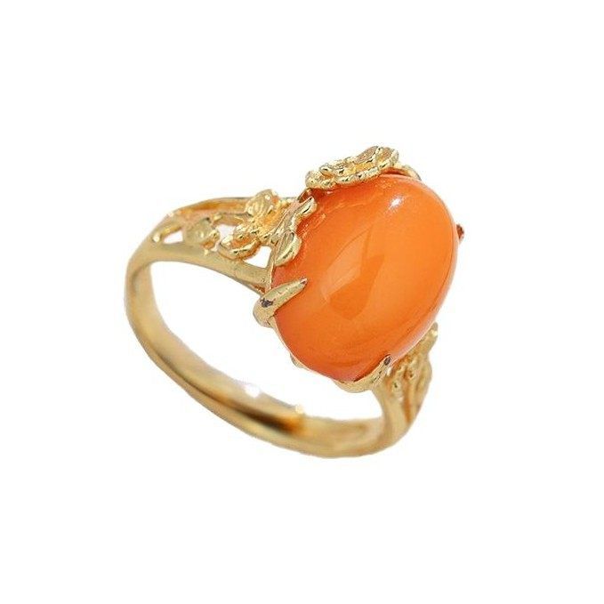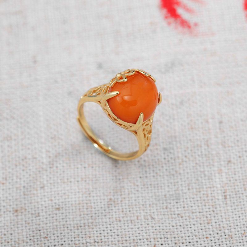 鑫葆康纯银925银金开口蜻蜓分色女戒蜜蜡复古风镶嵌新中式电镀戒