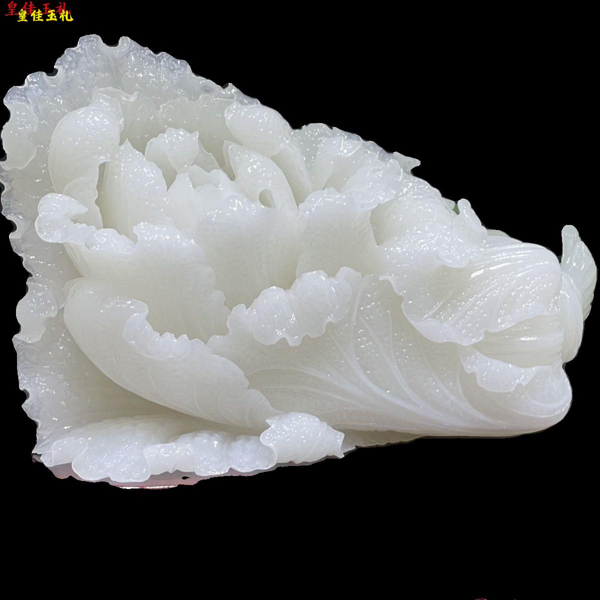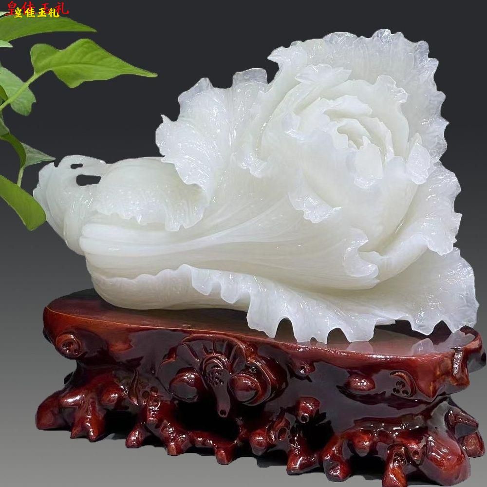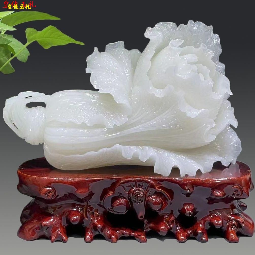 天然玉白菜精工招财纳福摆件阿富汗玉家居客厅办公室玄关装饰摆件