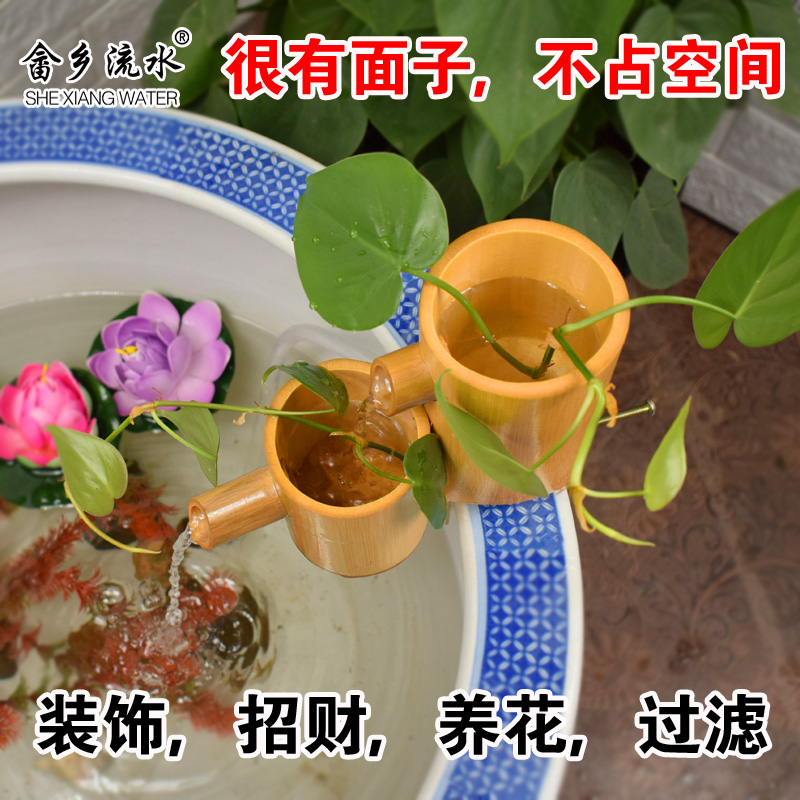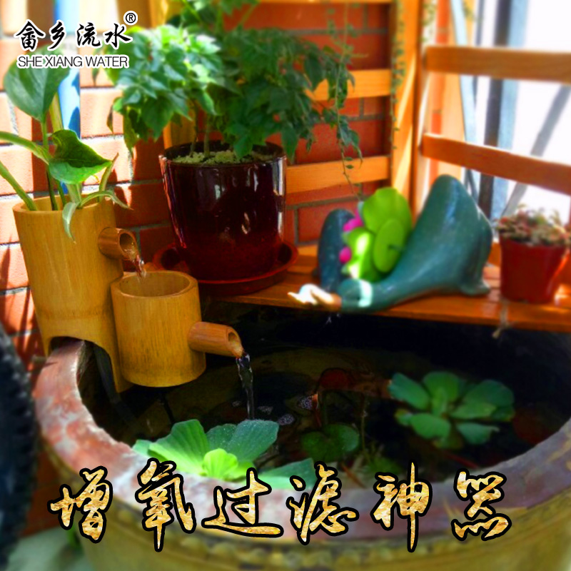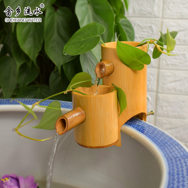 竹子流水摆件陶瓷石槽养鱼缸增氧过滤循环造景Q喷泉竹筒水车流水