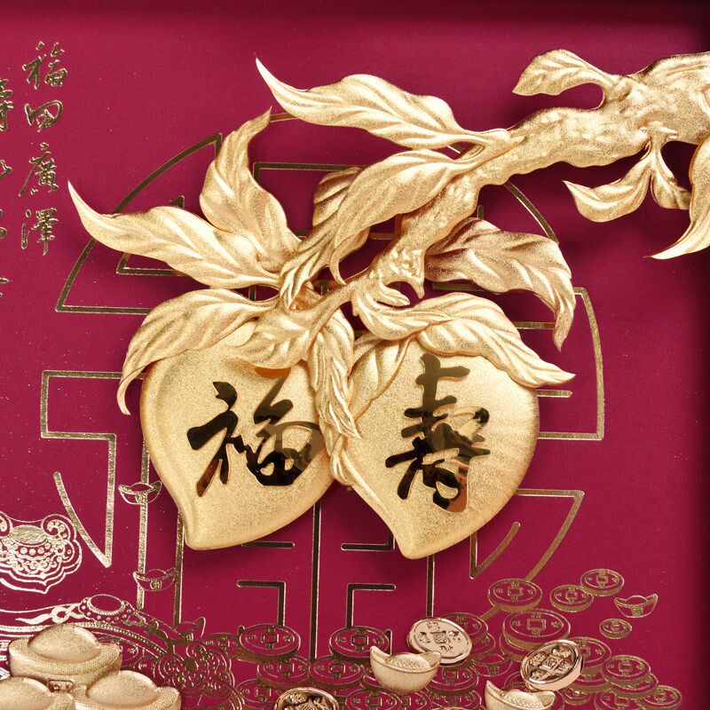 寿桃金箔画送贺寿星祝寿礼品老人家长辈生日爷爷奶奶6080大寿礼物