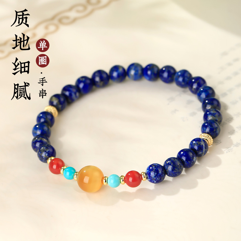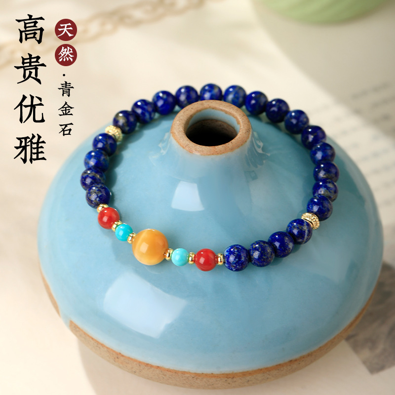 青金石手串收藏级6mm天然宝石手链女小众克莱因蓝色晶石招财水晶
