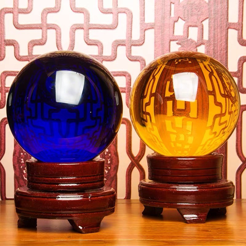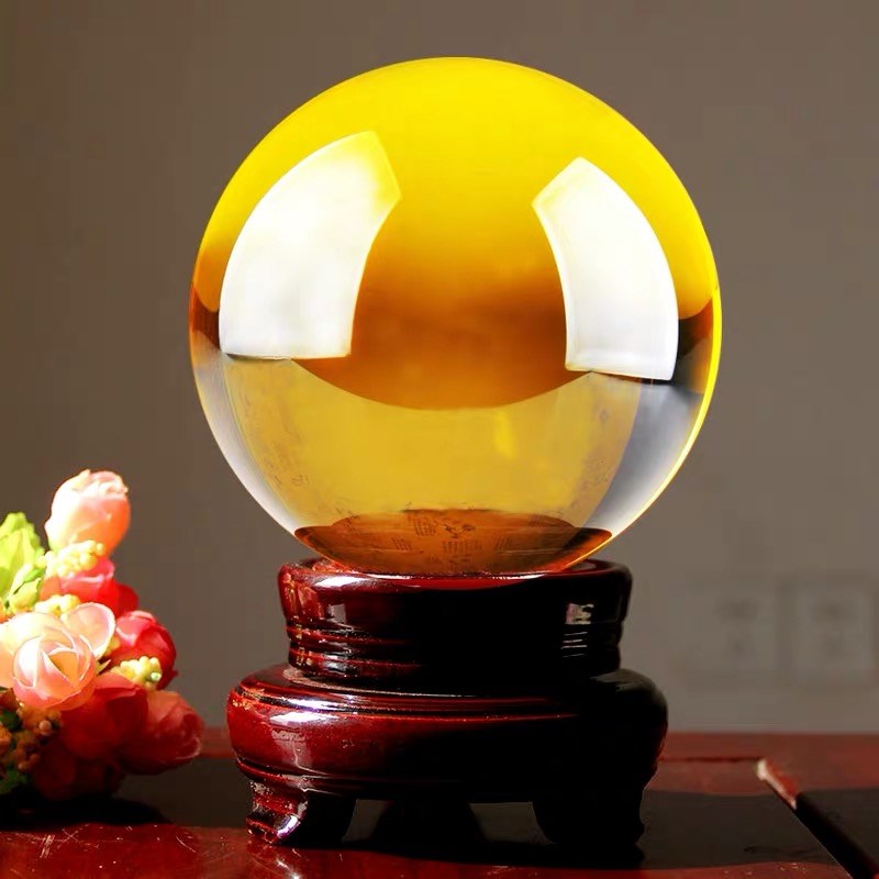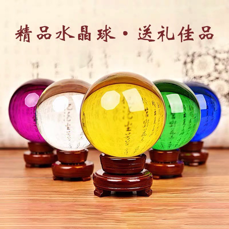 黄白纯色水晶球摆件绿紫蓝t粉红色水晶透明玻璃球家居客厅桌面装