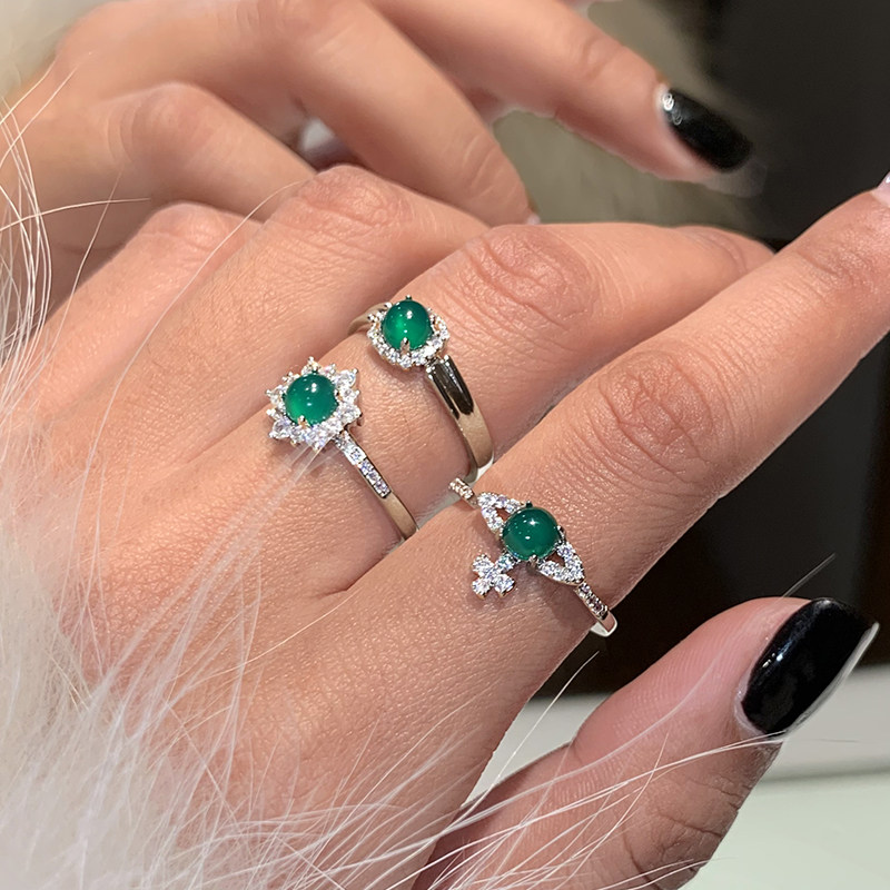 天然蛋面绿色玛瑙玉髓开口戒指女款独特小众设计高级感玉石食指环