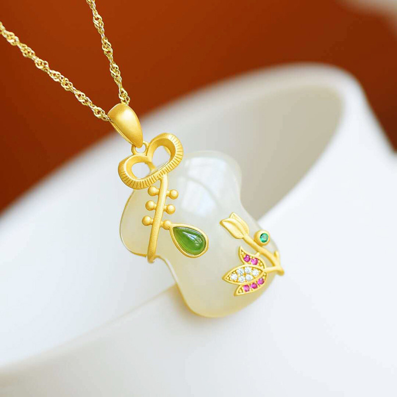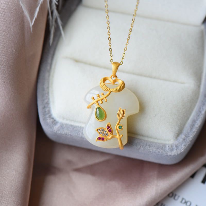 锦衣玉食沙金项链金镶玉吊坠复古文艺清新旗袍女项坠吊坠情侣