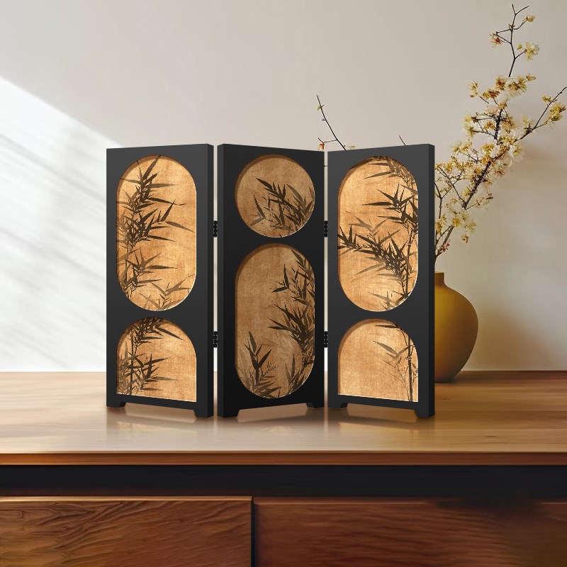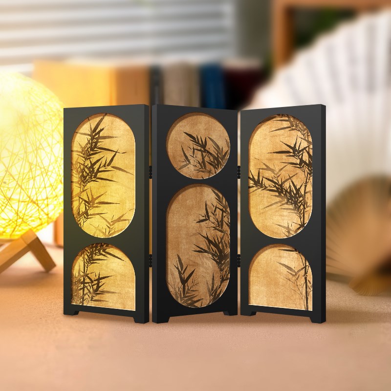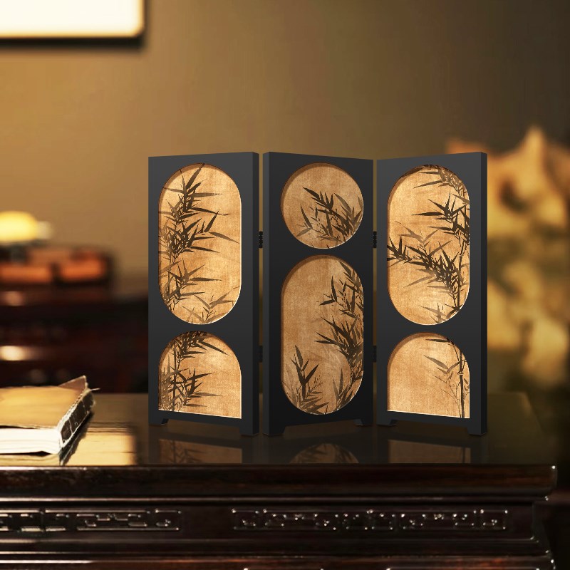 中古风墨竹小屏风摆件茶桌家居边柜斗柜桌面装饰品复古装饰摆画