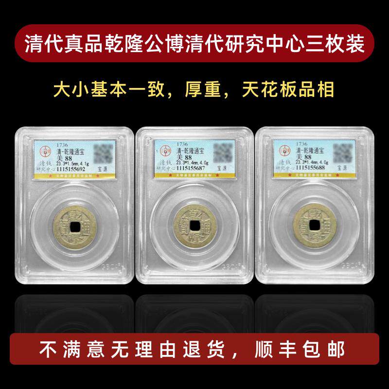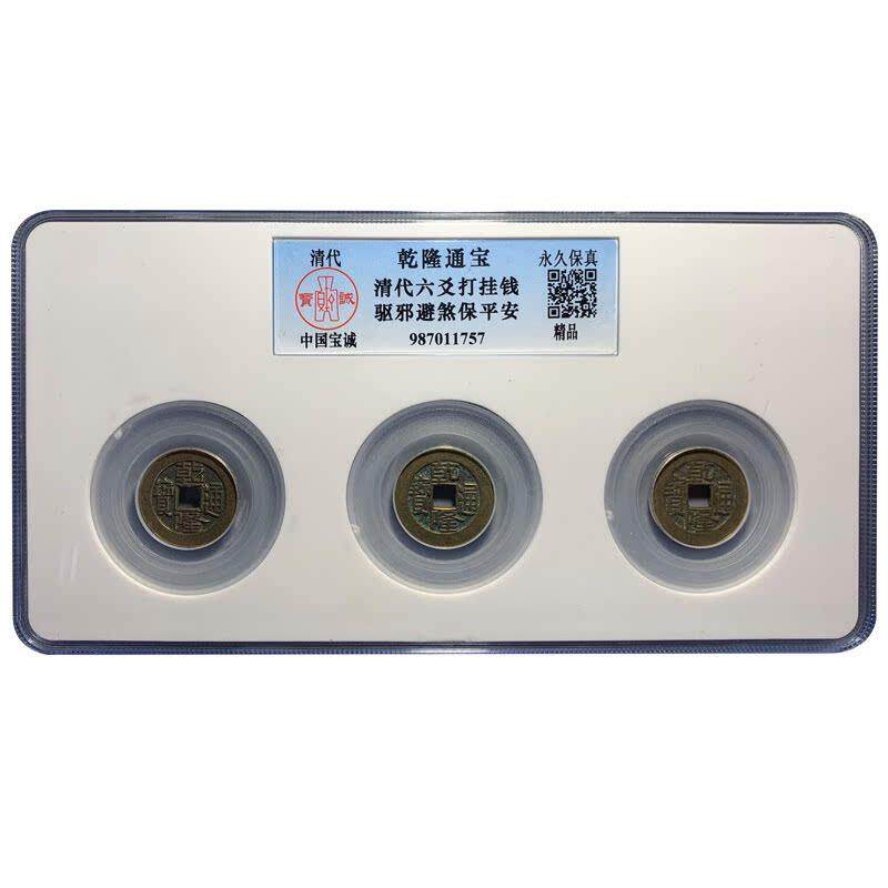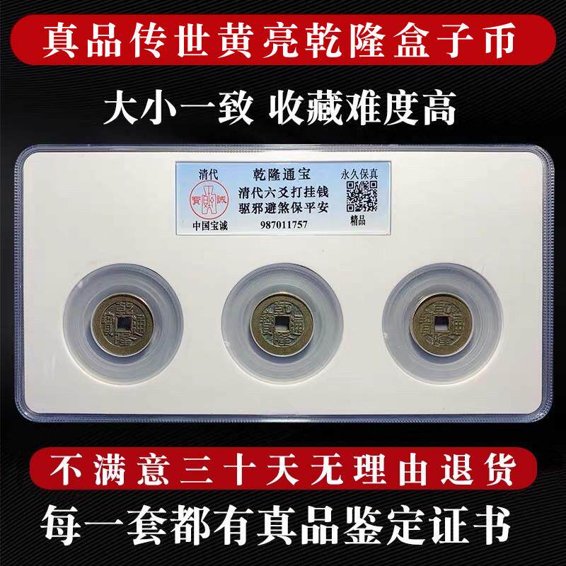 保真三枚黄亮干 干隆通宝盒子币真品古董钱币传世古币带证书公博