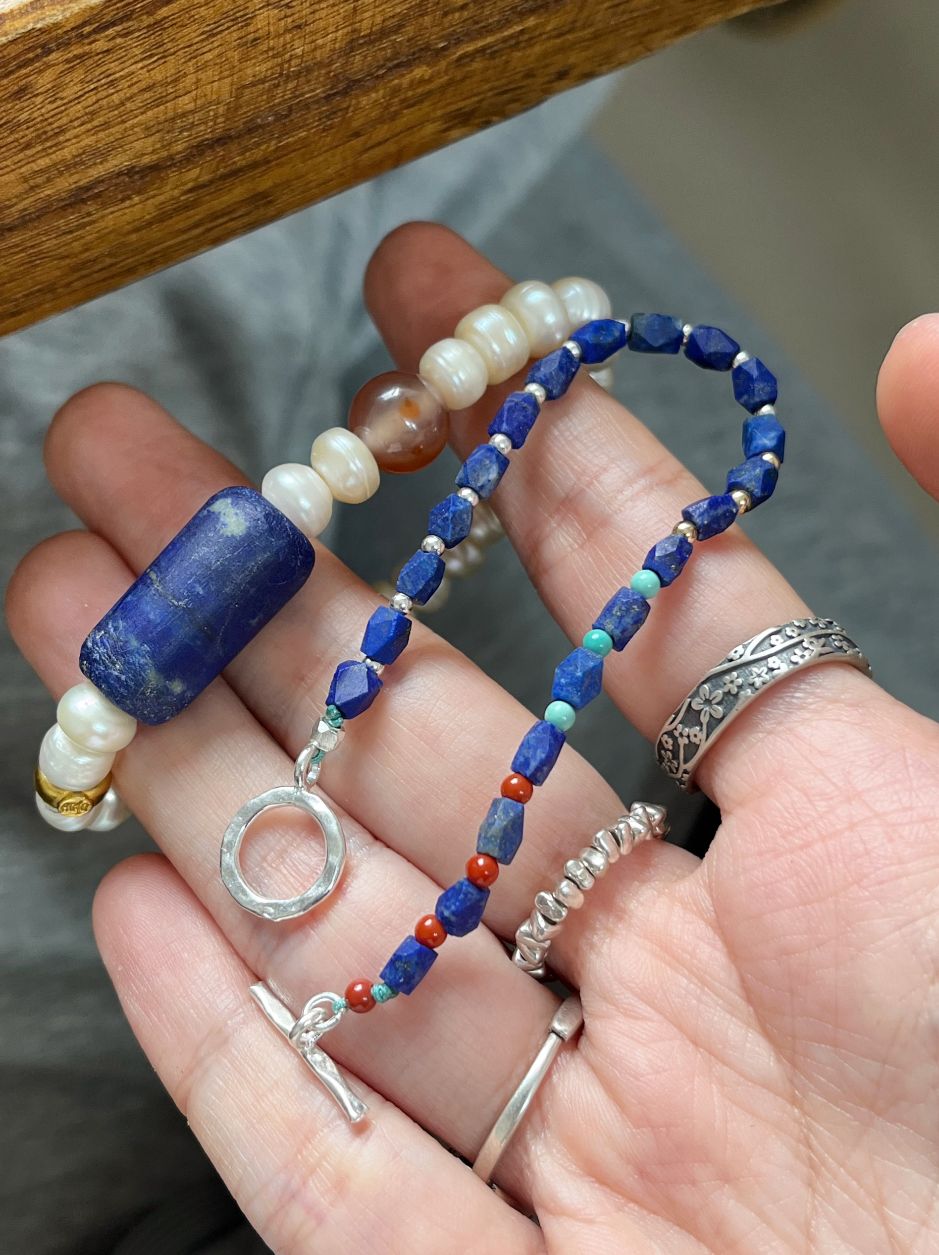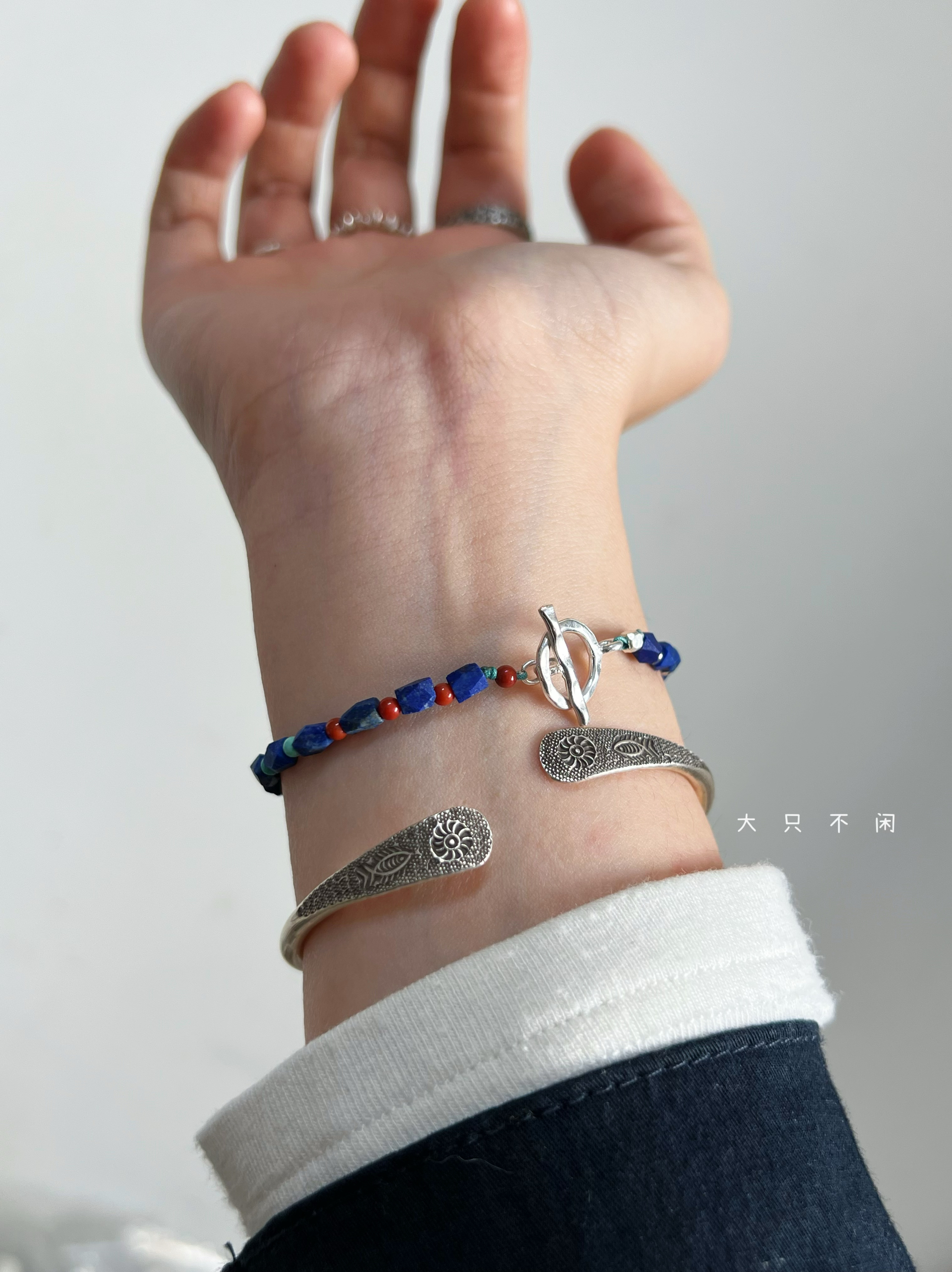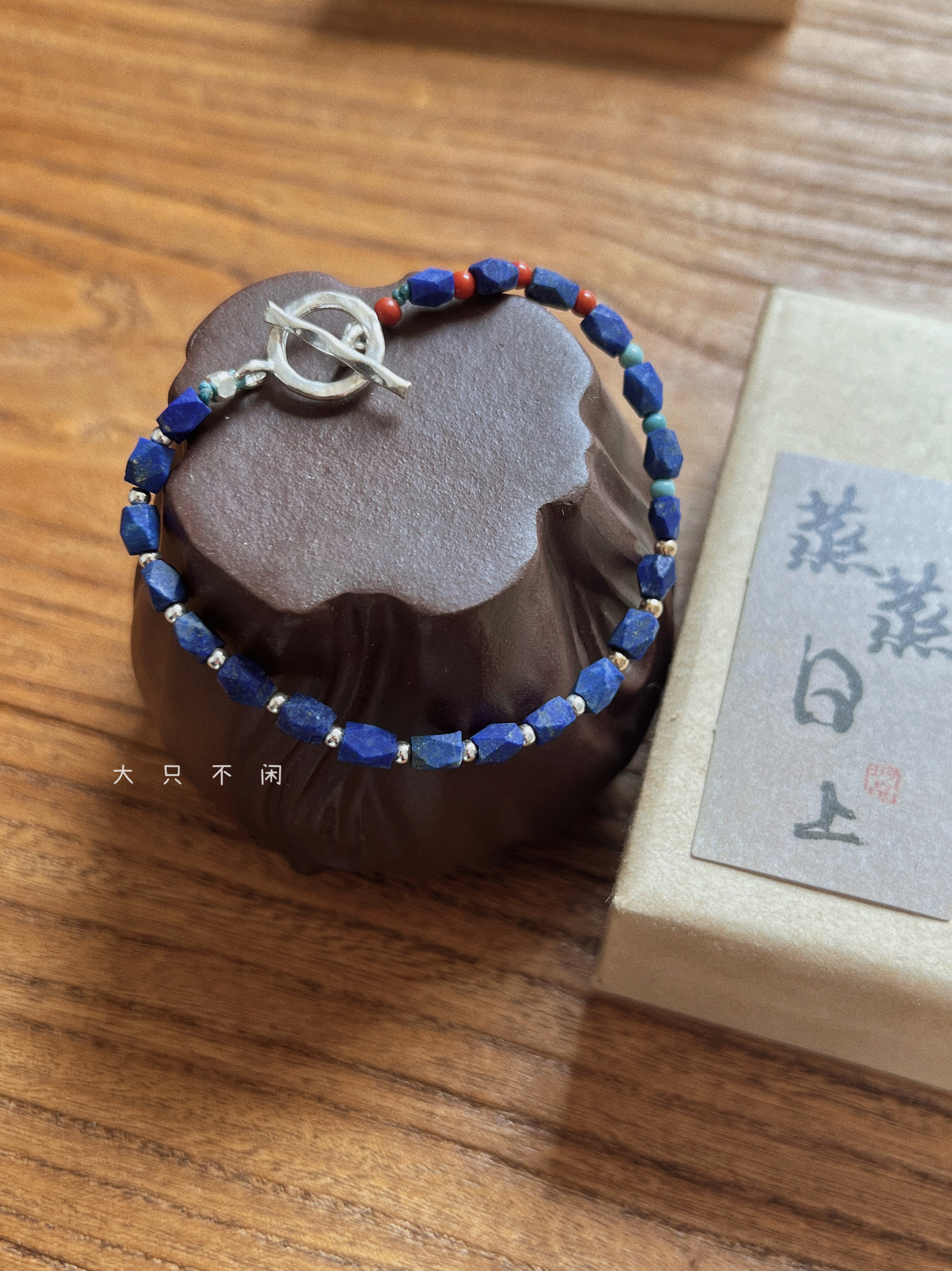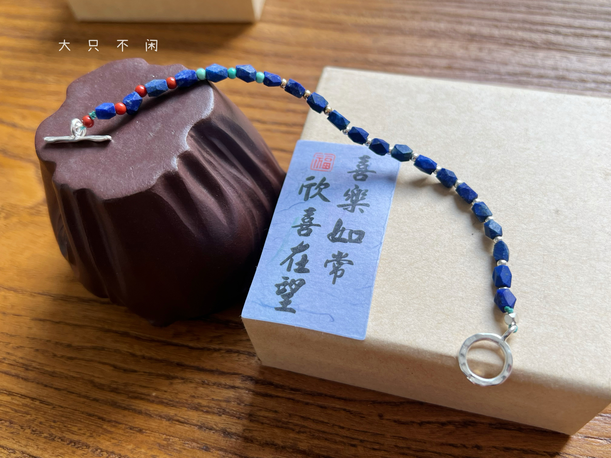 不闲原创手作 这一抹蓝 西亚老青金石古珠手链 原创纯银手链