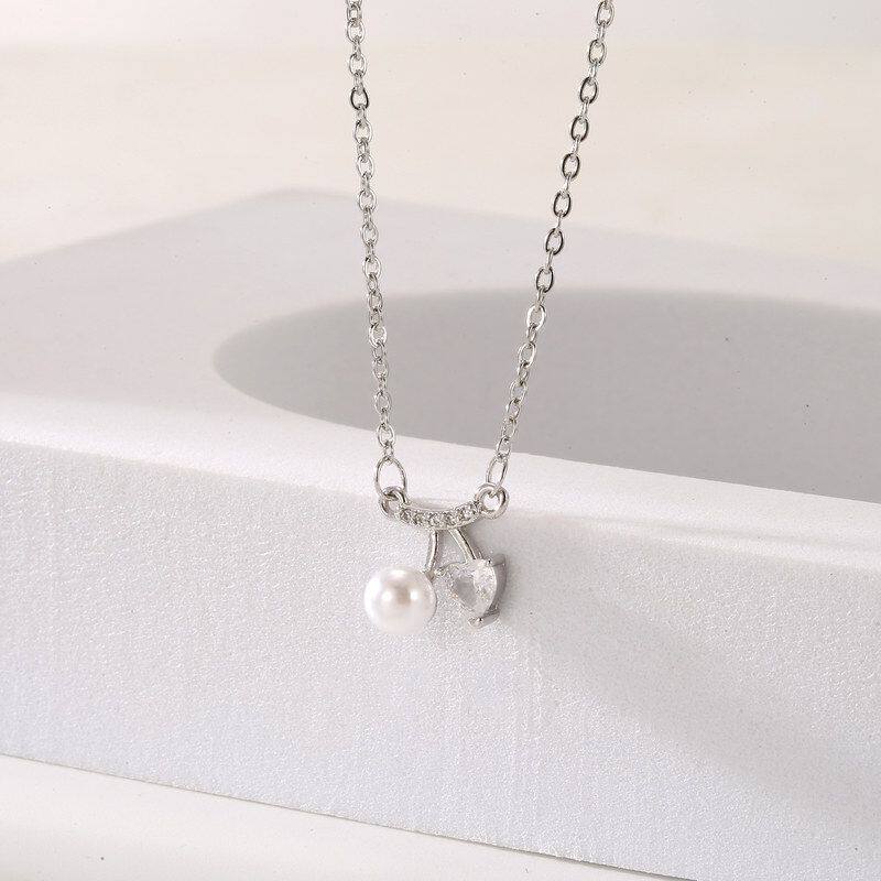 樱桃小锁骨珍珠项链直播批发爱心女轻新款奢带甜美小链钻颈链清新