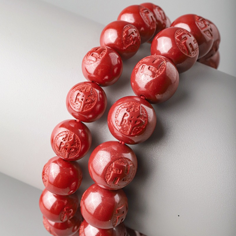 朱砂手链圆佛珠手串高含量帝王砂本命年红色首饰品男女款