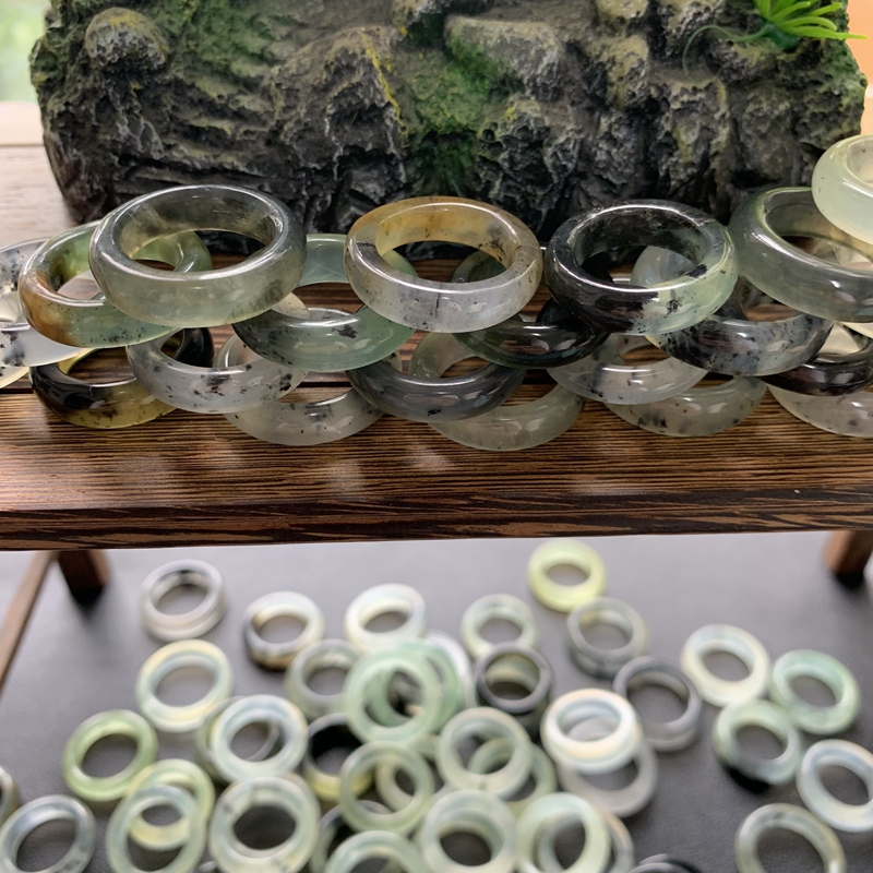 【全品】F86天然岫玉冰水墨戒指宽戒指一物一图远山青黛