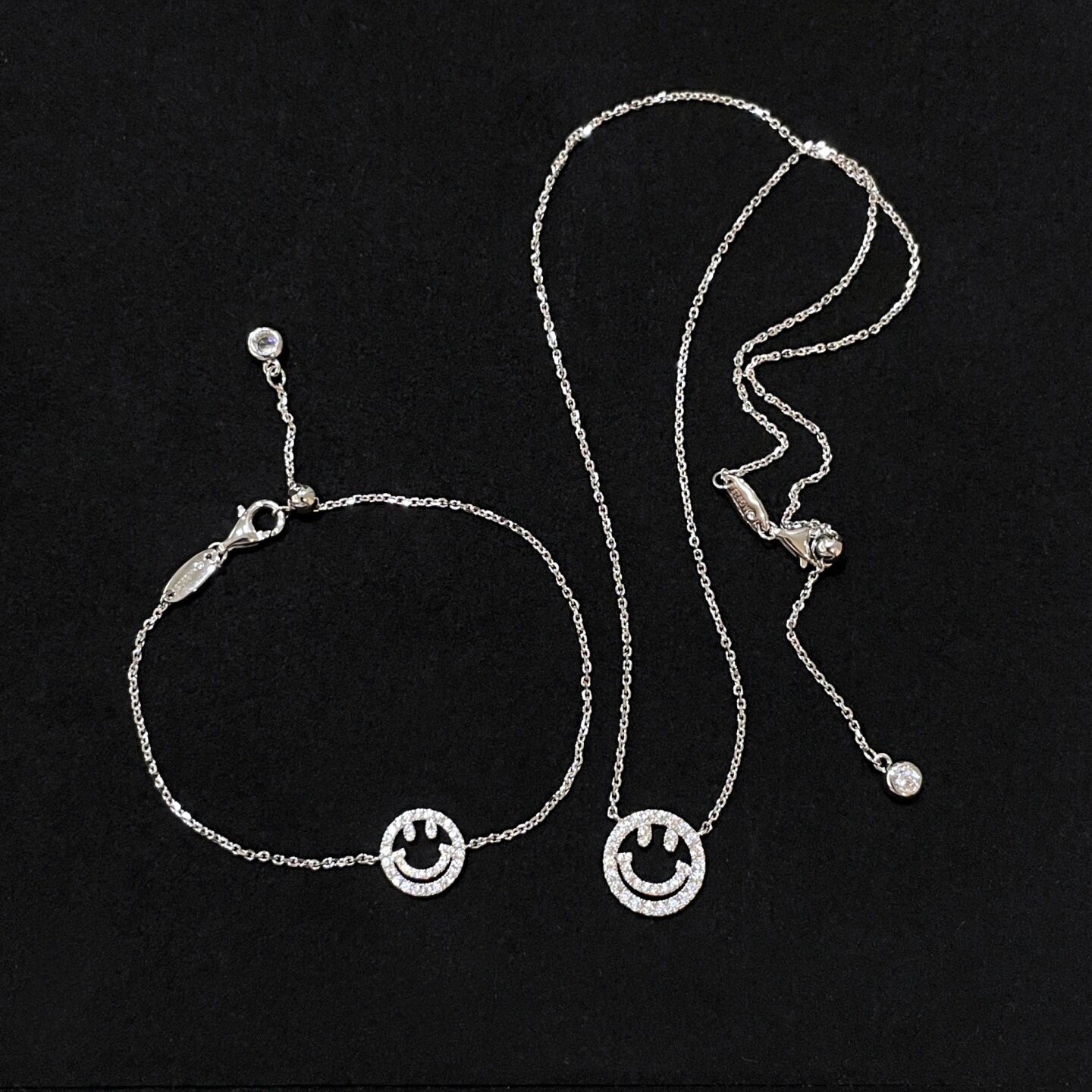 甜酷双面笑脸项链女925银镀金满钻光面两戴精致百搭锁骨链送礼物