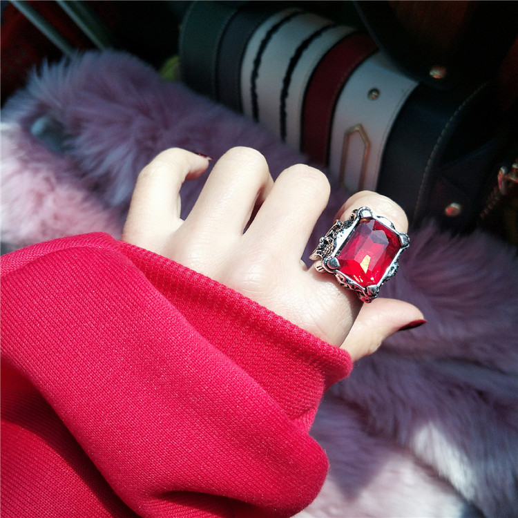 个性潮人夸张时尚红色大宝石食指戒指环女轻奢小众设计高级感新款