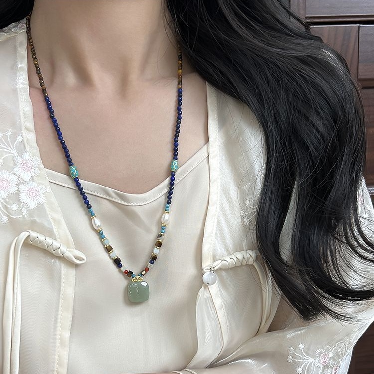 新中式天然和田玉无事牌珍珠国风项链高级轻奢锁骨链毛衣链气质女
