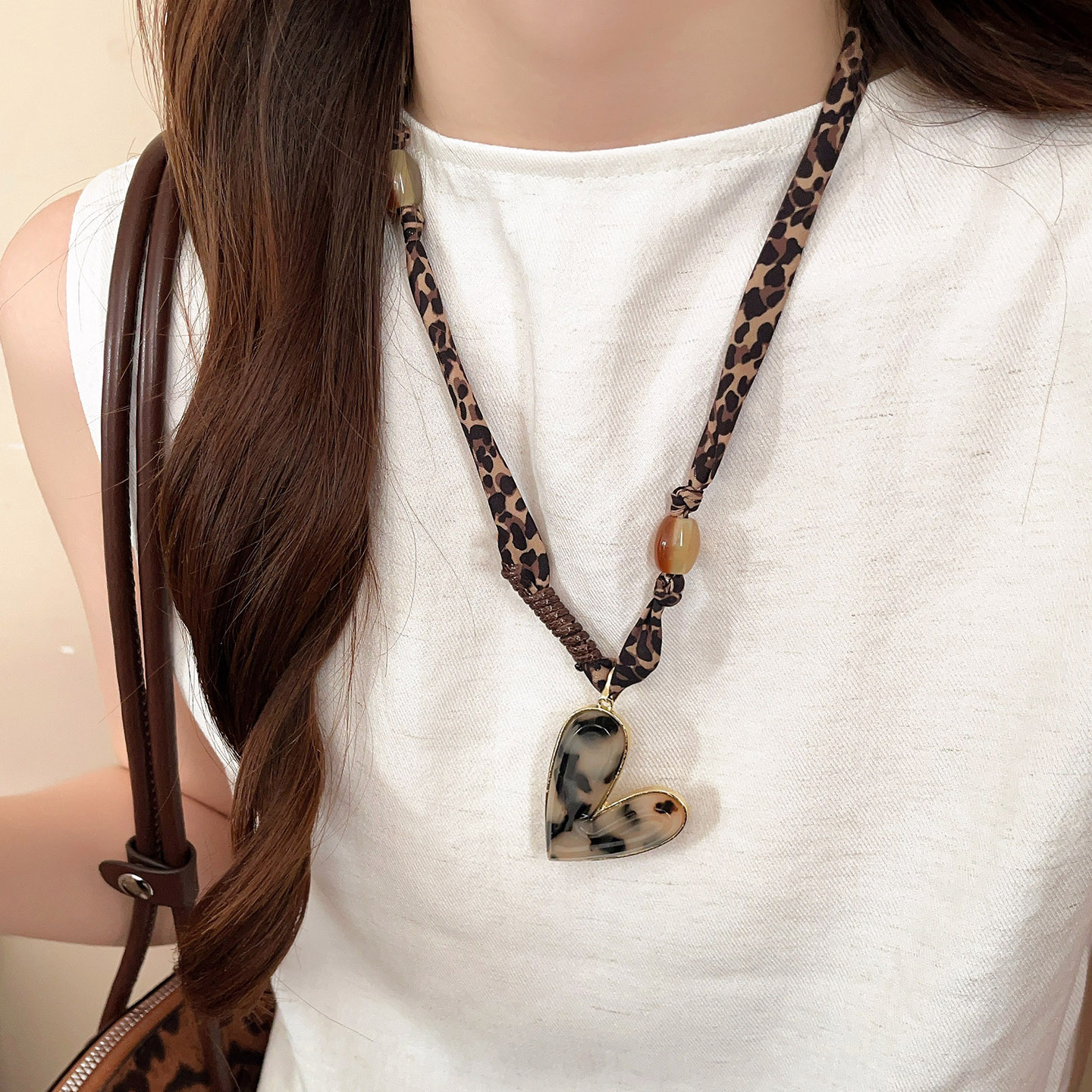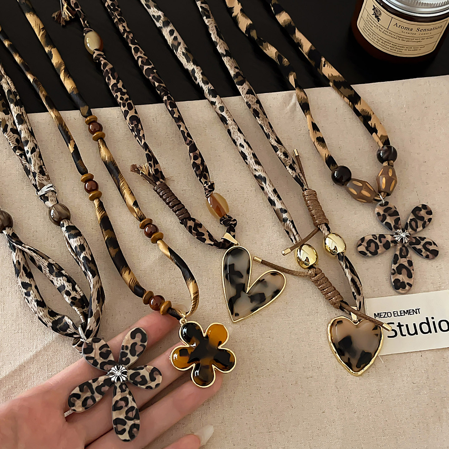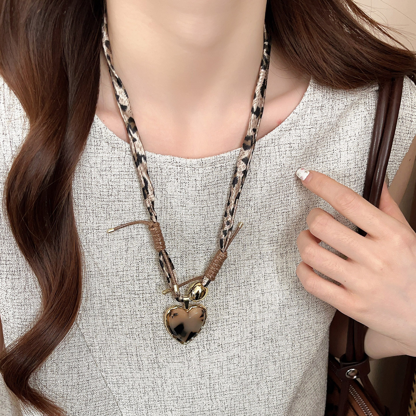 复古豹纹丝巾项链女高级感2025新款个性时尚毛衣链小众设计感配饰
