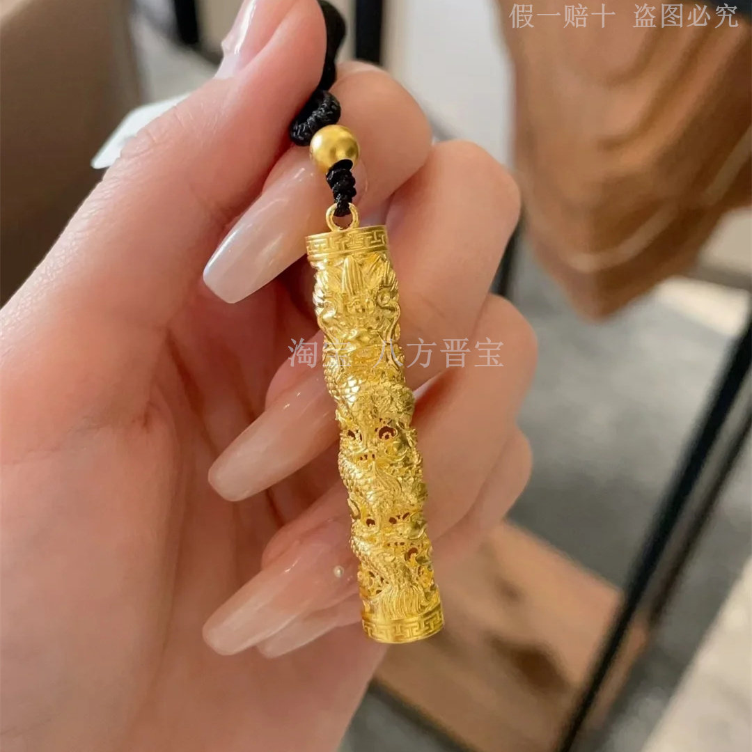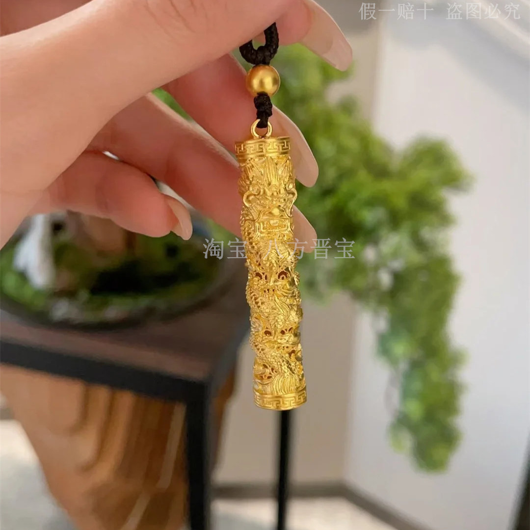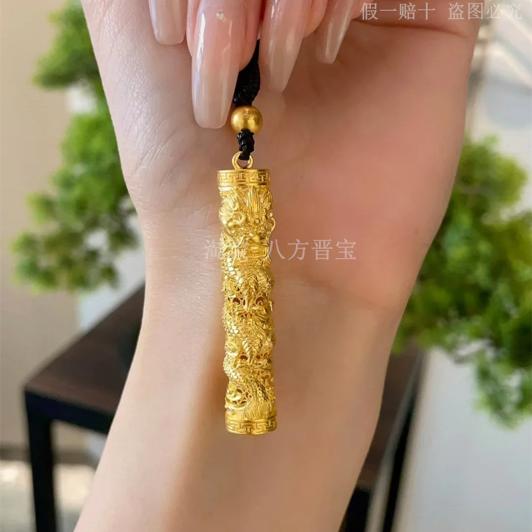 黄金浮雕盘龙柱吊坠足金999男挂坠项链金包银吊坠编绳送男友礼物
