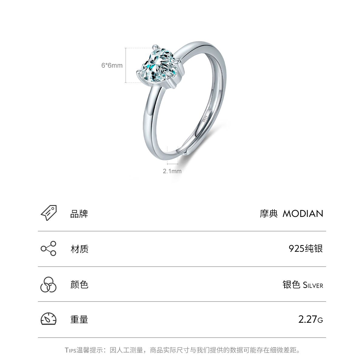 MODIAN s925纯银新款潮气质心形锆石戒指女小众设计感开口指环女