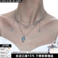 PP饰品《沫》蓝色流苏925纯银项链女小众设计颈链多层叠戴锁骨链
