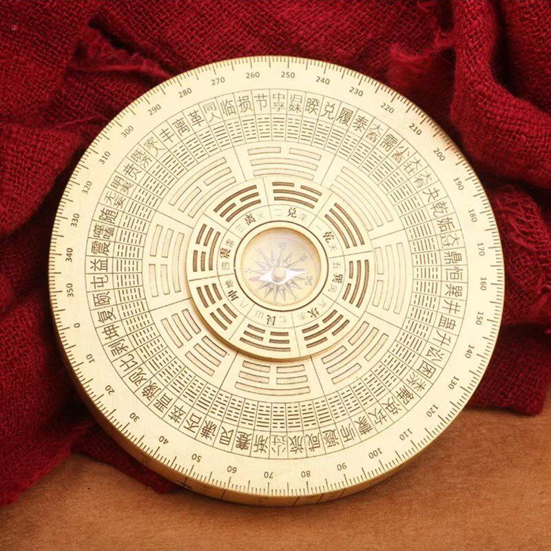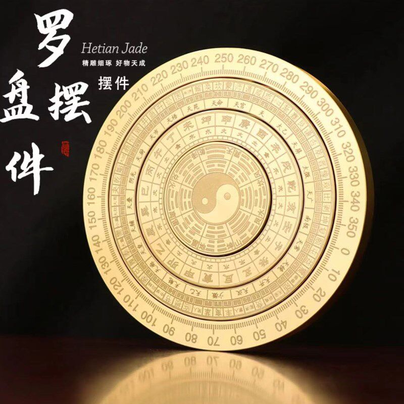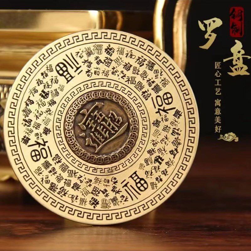全铜解压罗盘黄铜转转手把件双面旋转随身携带把玩八卦转盘