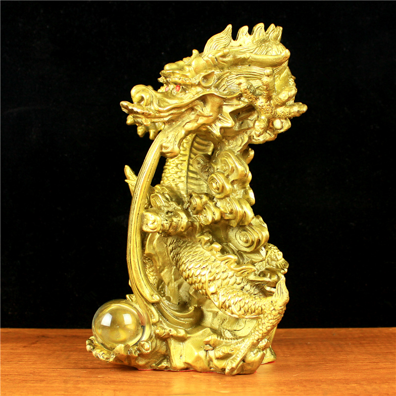 纯铜单龙戏珠龙王金龙青龙黄铜龙摆件家居饰品工艺品办公室桌面摆