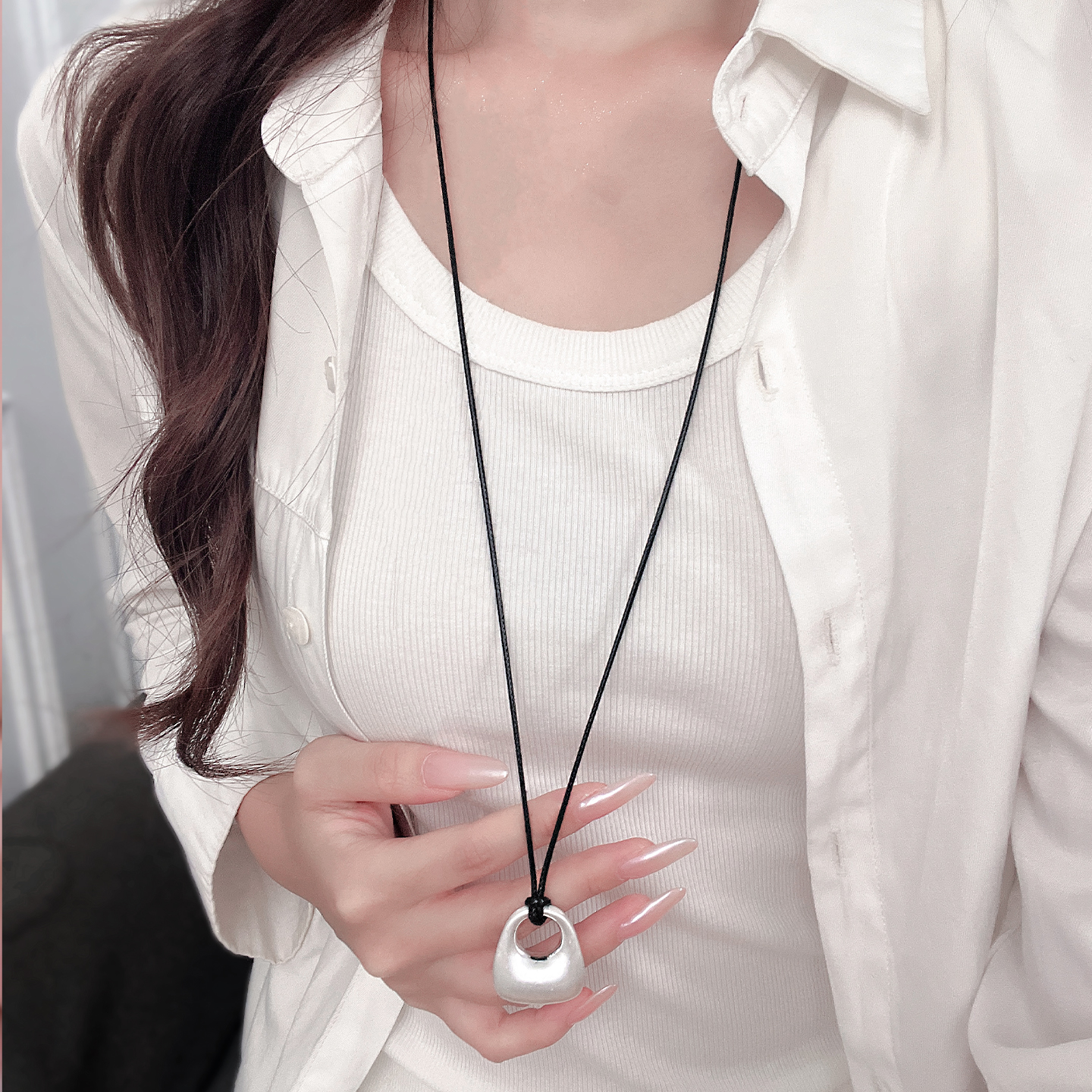 Z小姐 韩系简约银色锁包长款项链女2025新款爆款小众高级感毛衣链