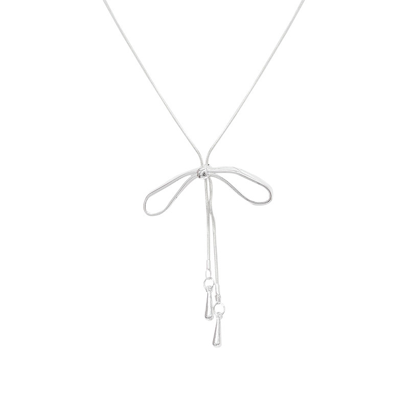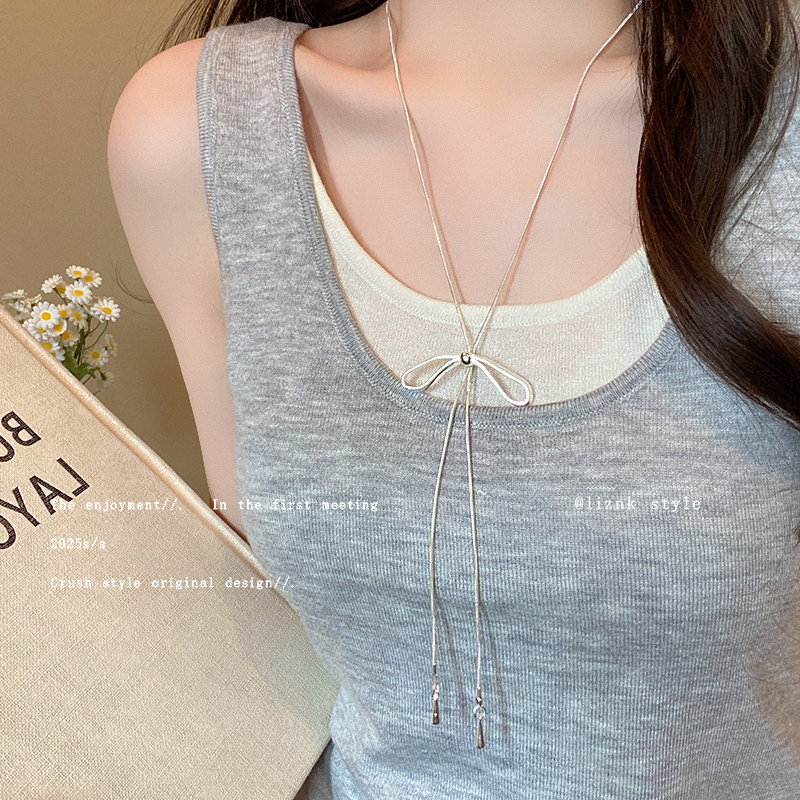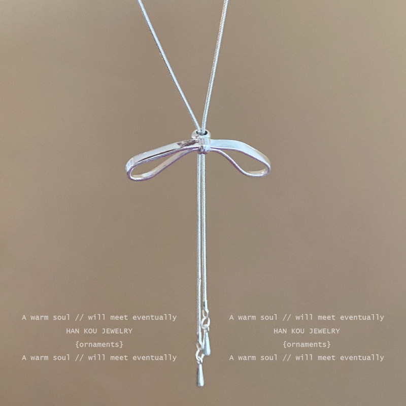 蝴蝶结吊坠抽拉项链女款韩系长款装饰毛衣链银色百搭t恤配饰穿搭