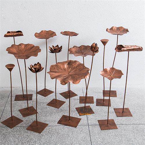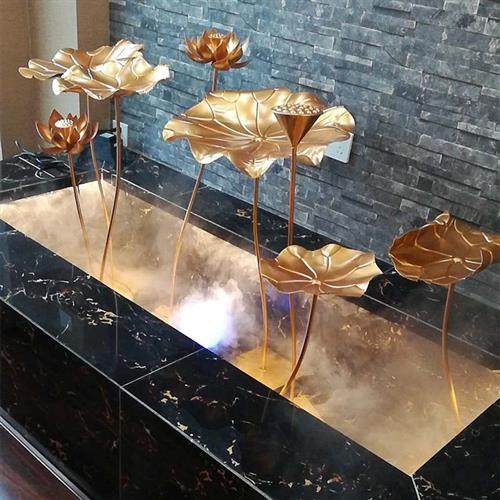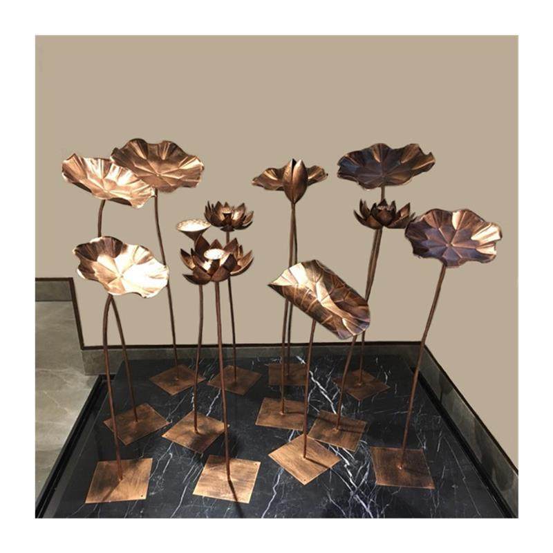 铁艺仿真荷花摆件园林花园水池观金属装饰不锈钢荷叶落地水景雕塑