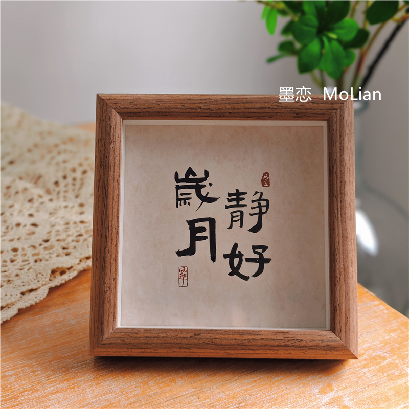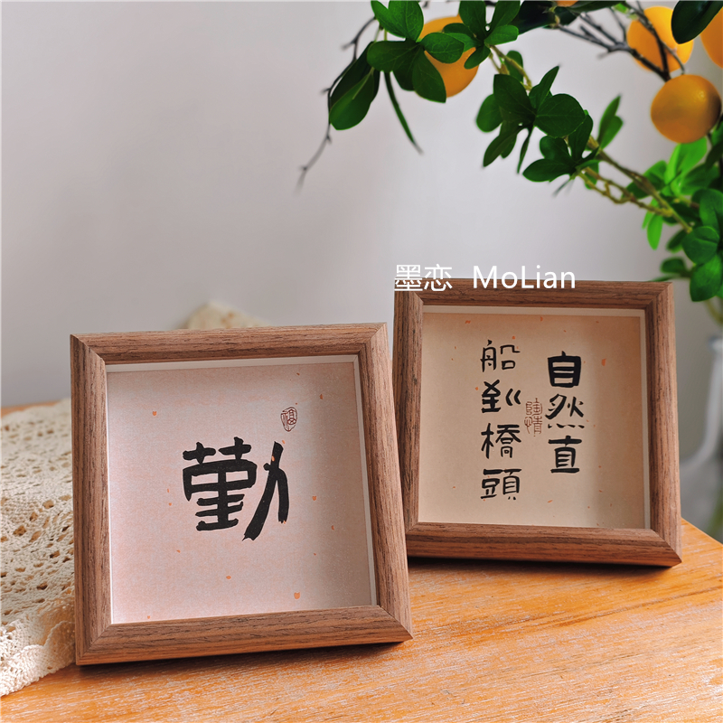 古风书法文字相框摆台客厅入户玄关摆画书房木质玻璃桌面装饰摆件