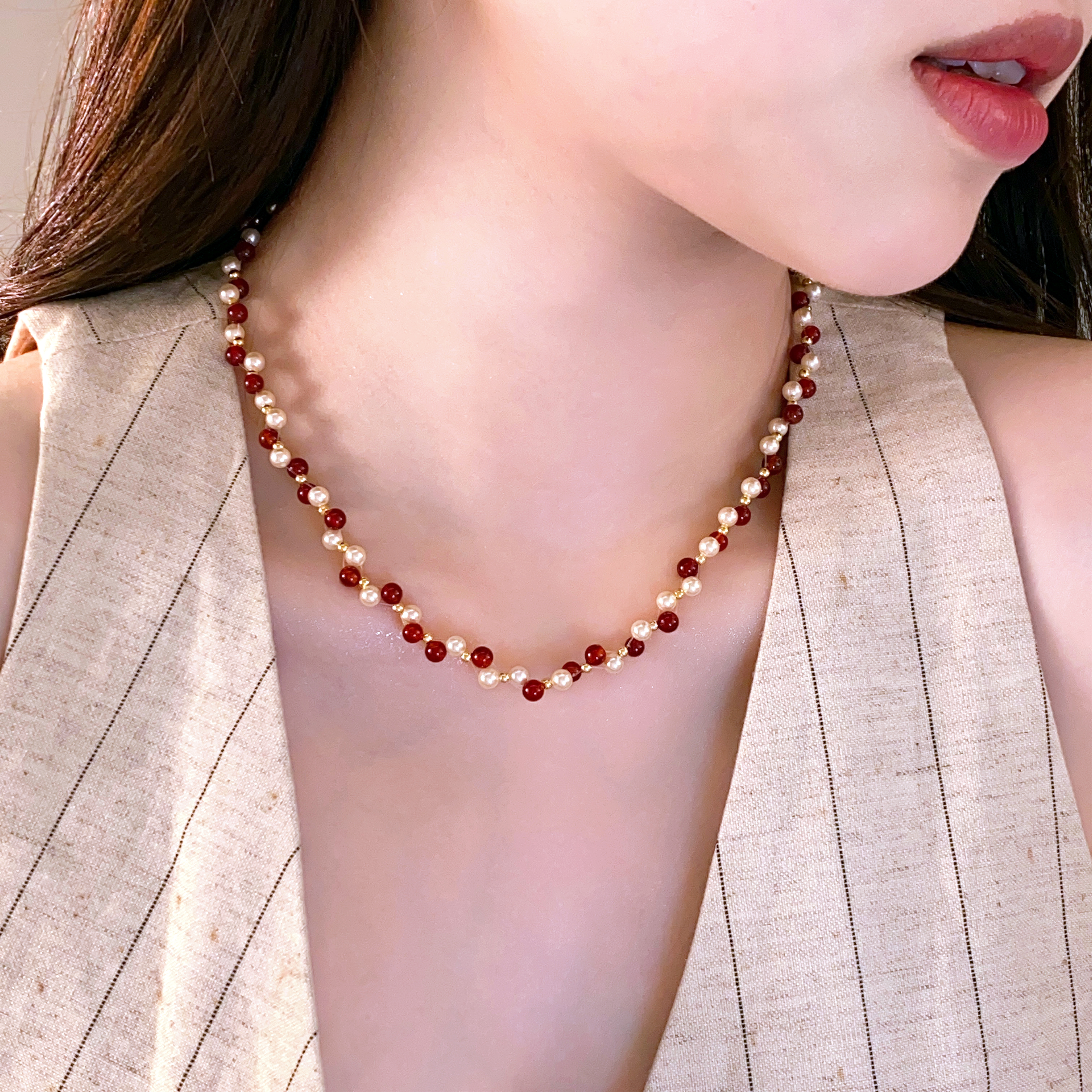 红色玛瑙珍珠串珠项链女2025新款长款毛衣链大气高档高级感配饰品