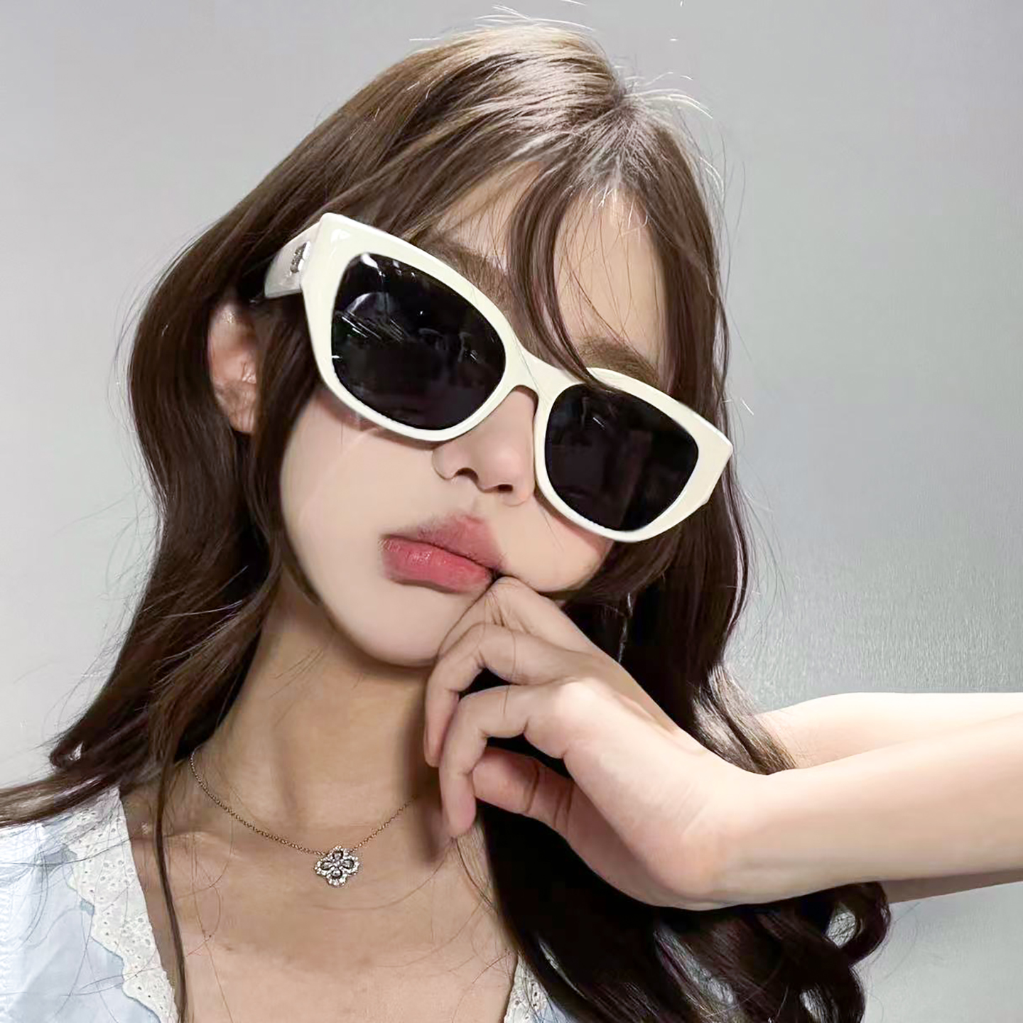 2025新款复古大框女白色猫眼墨镜时尚高级感百搭显脸小街拍太阳镜
