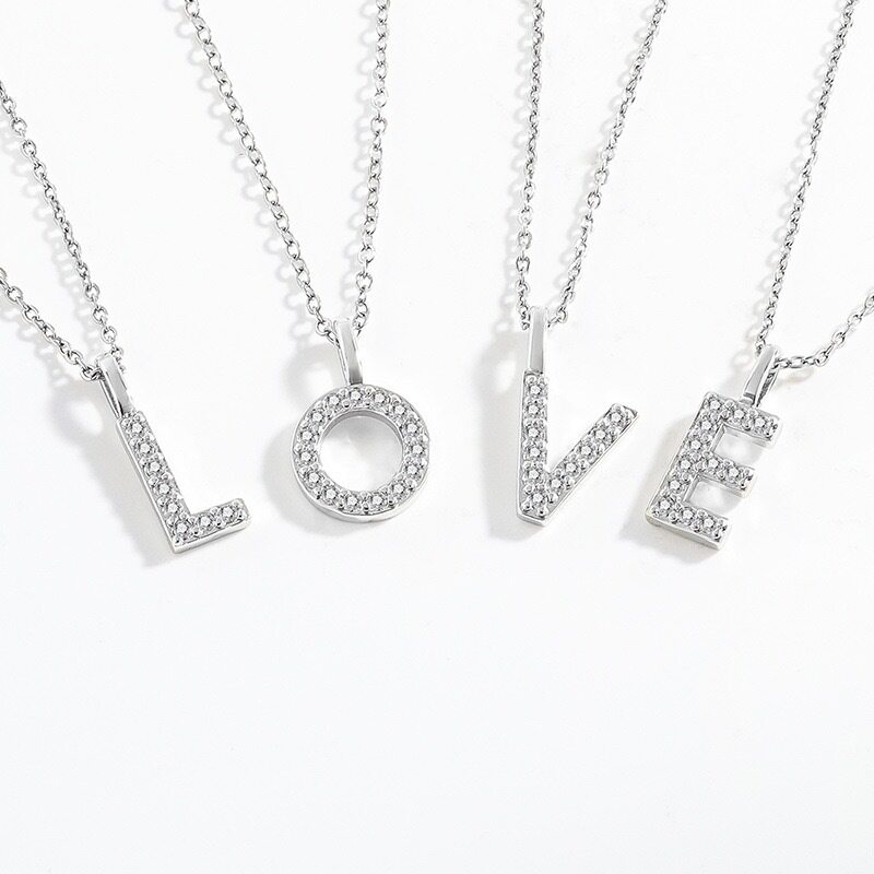 欧美跨境热销满钻微镶镶锆石超闪字母项链女吊坠锁骨链感饰品