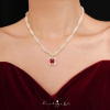 「巴黎酒会」法式轻奢高级感复古闪耀酒红锆石双层珍珠项链锁骨链